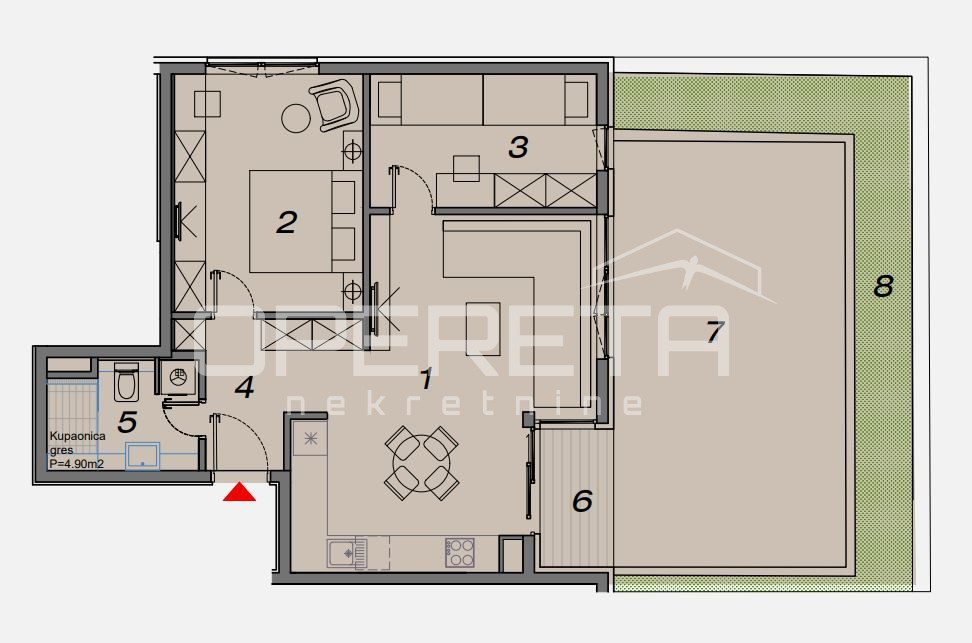 Namještaj nije uključen u cijenu, ali ga je moguće namjestiti kao na slikama uz nadoplatu (na upit).