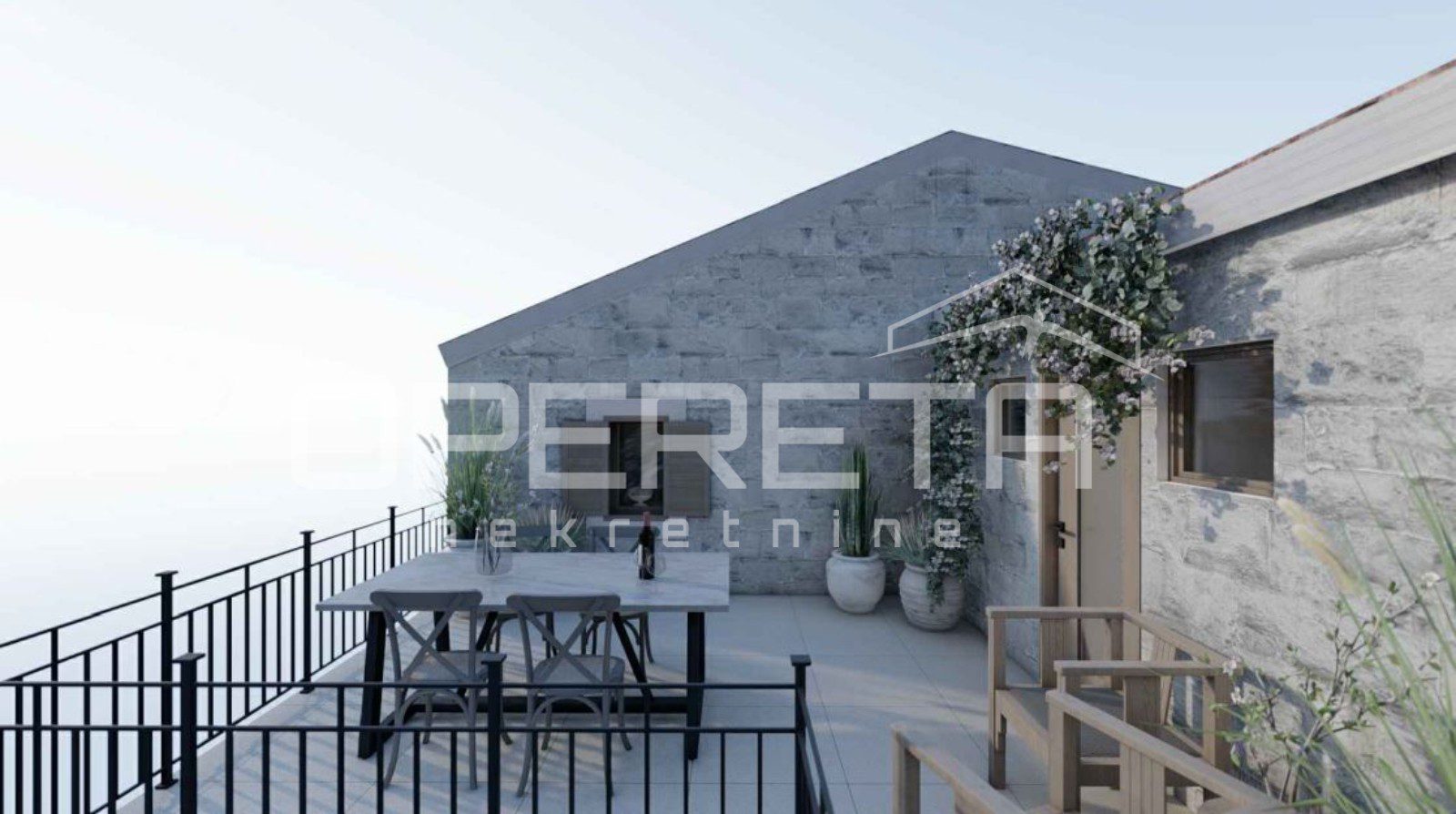 Vrlo rijetka prilika za kupnju stana u potkrovlju smještenog u samom srcu stare gradske jezgre Makarske, svega 50 metara od mora. Ova nekretnina nalazi se u prizemlju autentične kamenite građevine u tradicionalnom dalmatinskom stilu, s impresivnim zidovima širine 70 cm koji pružaju izvrsnu izolaciju i povijesni šarm. Građevina je zaštićena od strane Ministarstva kulture Republike Hrvatske kao nematerijalna kulturna baština, što joj dodatno daje na vrijednosti.