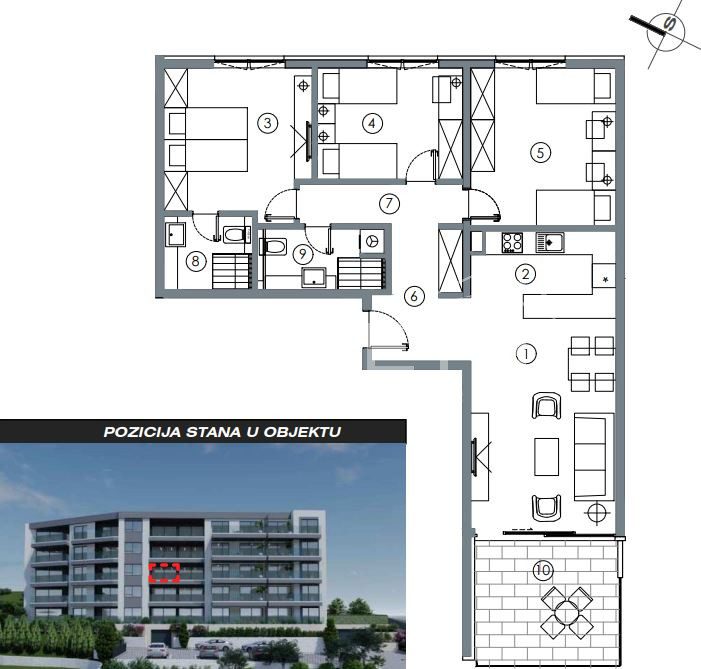 Ne samo da je stan tehnološki napredan, nego nudi i privatnost s prekrasnim pogledima na grad i more. Uređeni vrtovi i hortikultura oko zgrade stvaraju savršeni ambijent za opuštanje, a kvaliteta gradnje ovog stambenog objekta je zajamčena.
