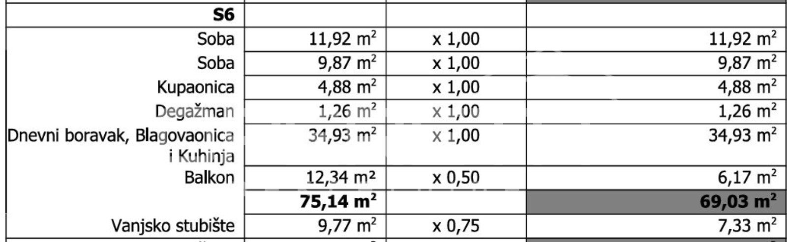 Osim prostrane krovne terase od 69,03 m² (obračunski 17,26 m²) i privatnog parkirnog mjesta od 12,50 m² (obračunski 3,12m²), penthouse obiluje prirodnim svjetlom i nudi jedinstvenu kombinaciju privatnosti, luksuza i komfora. Ukupna obračunska površina nekretnine iznosi 89,41 m2.