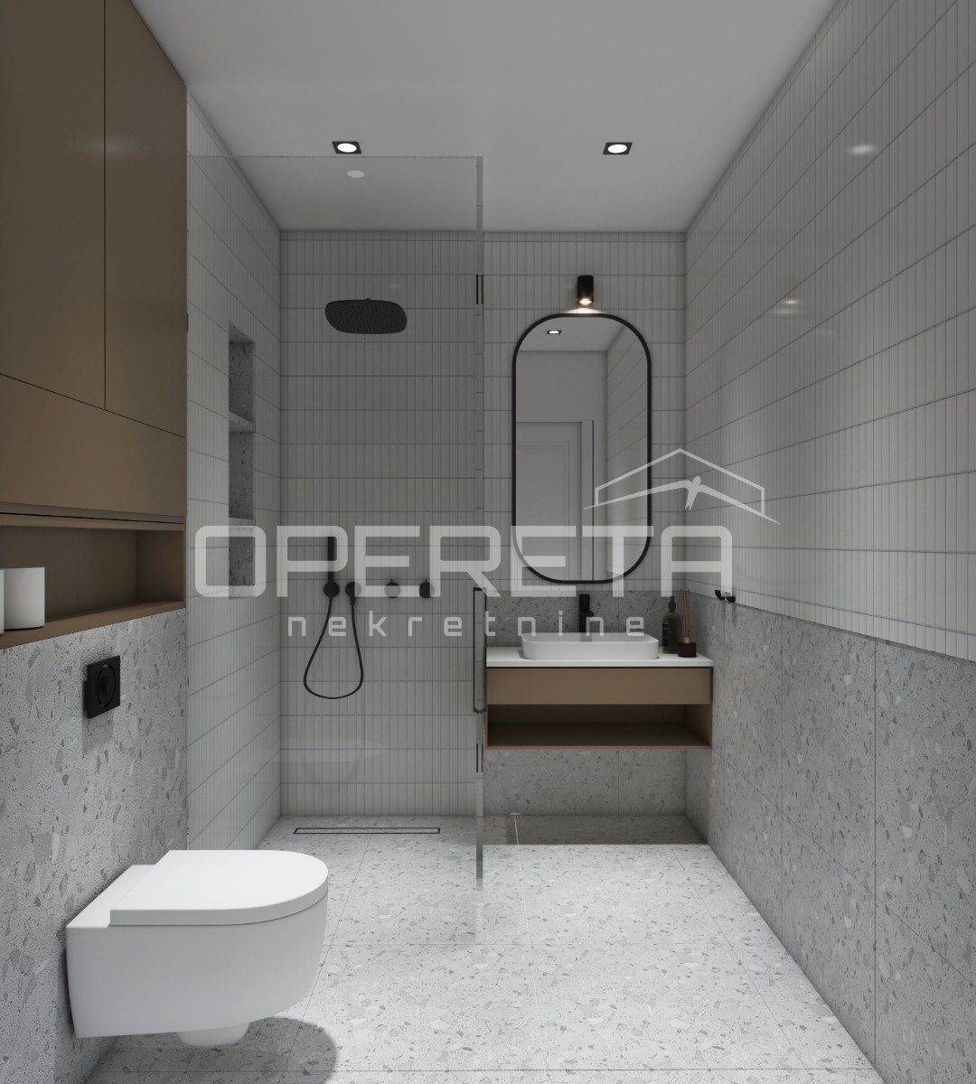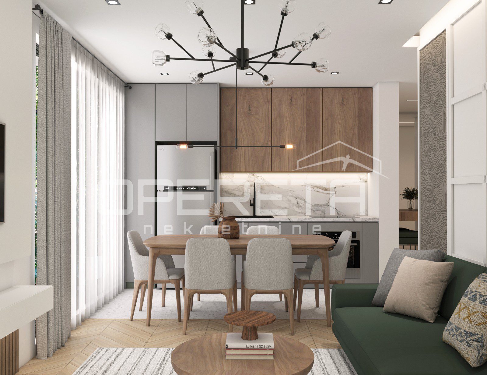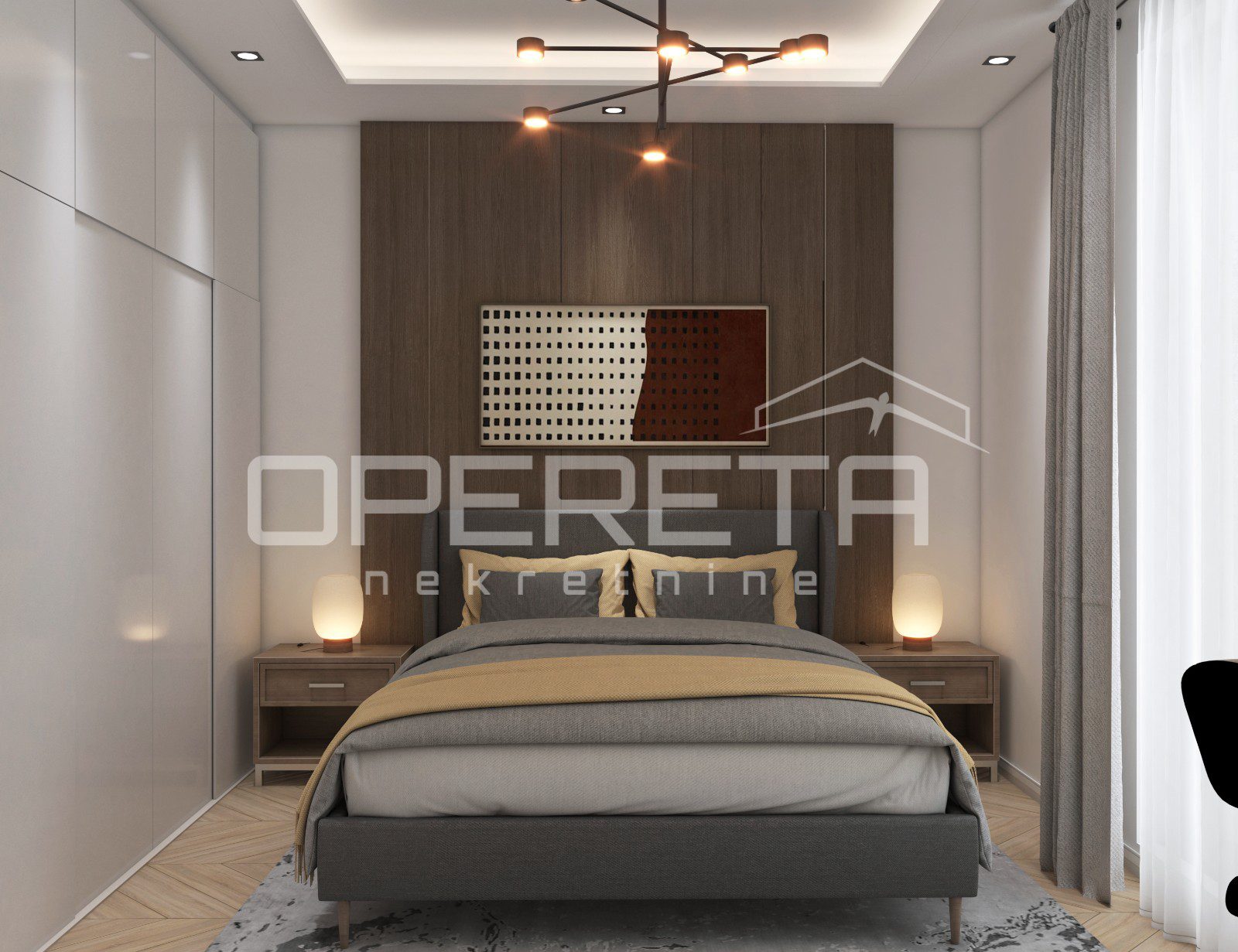 Stan obuhvaća ulazni hodnik, garderobu, spavaću sobu, kupaonicu te prostrani open space koncept s kuhinjom, blagovaonicom i dnevnim boravkom, s direktnim izlazom u vlastiti vrt površine 45,96 m².