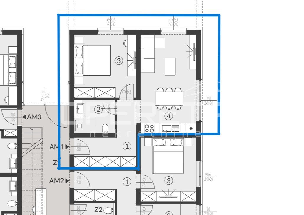 Predstavljamo moderan stan AM1 u novogradnji u okolici Medulina, ukupne stambene površine 51,87 m², smješten svega 200 metara od mora i marine. Idealno pozicioniran u prizemlju manje zgrade s 8 stanova, na rubu građevinske zone, pruža intimno i tiho okruženje.