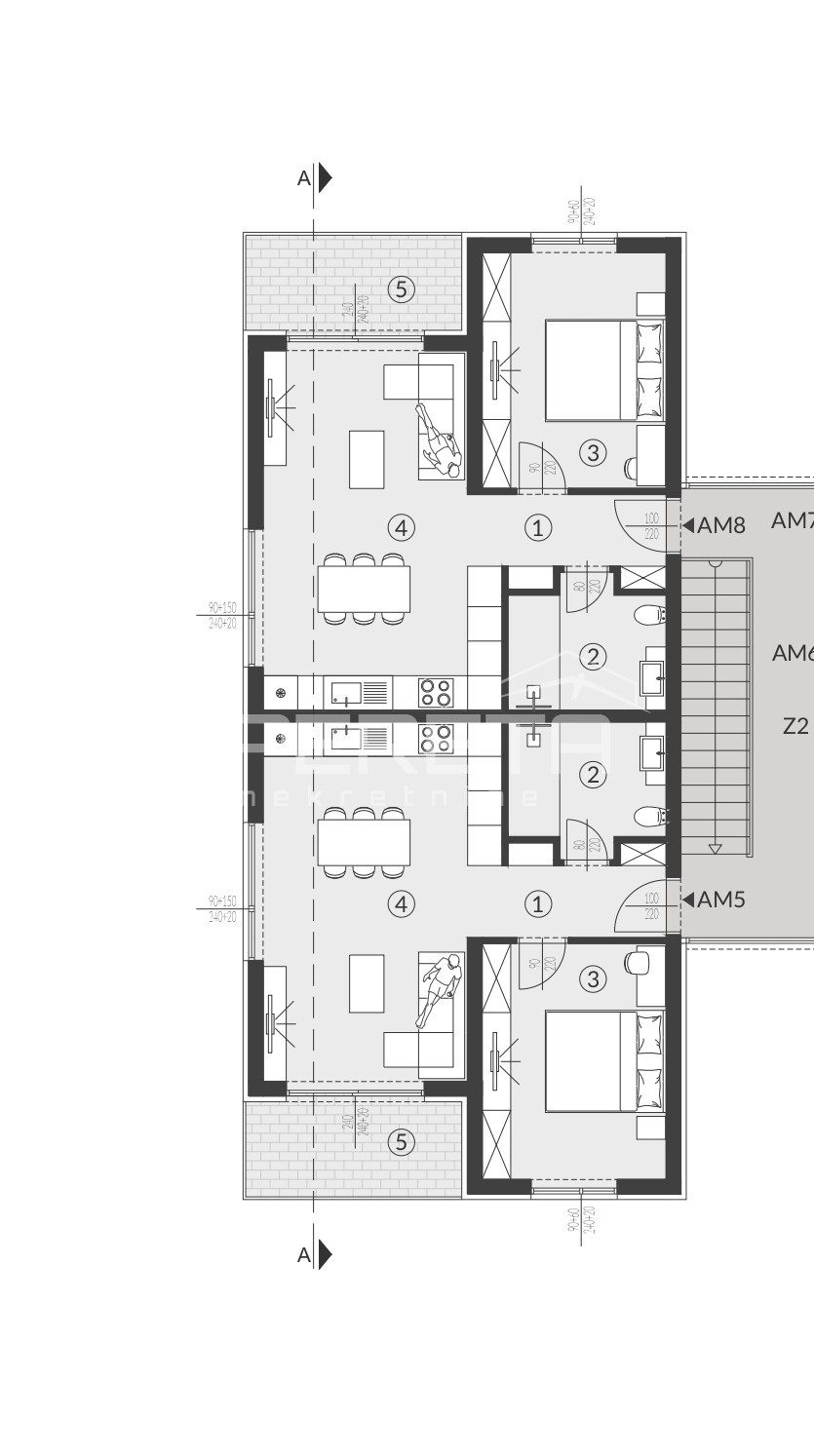 Predstavljamo moderan stan AM5 i na prvom katu zgrade u novogradnji u okolici Medulina, ukupne površine 53 m², smješten svega 200 metara od mora i marine. Idealno pozicioniran u prizemlju manje zgrade s 8 stanova, na rubu građevinske zone, pruža intimno i tiho okruženje.