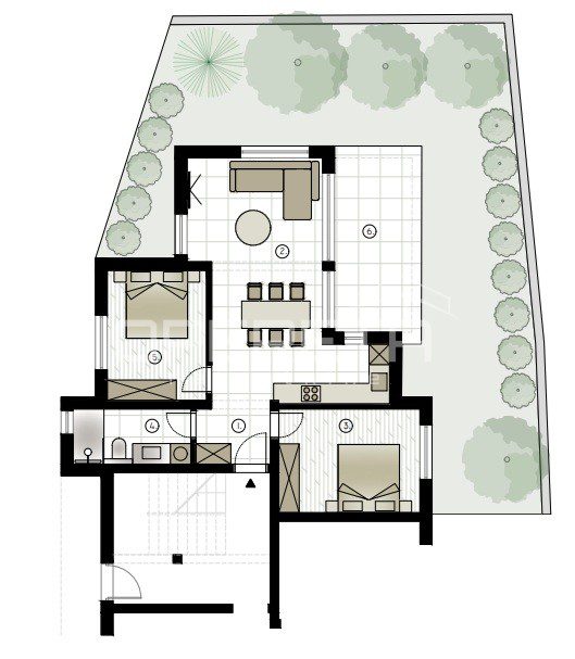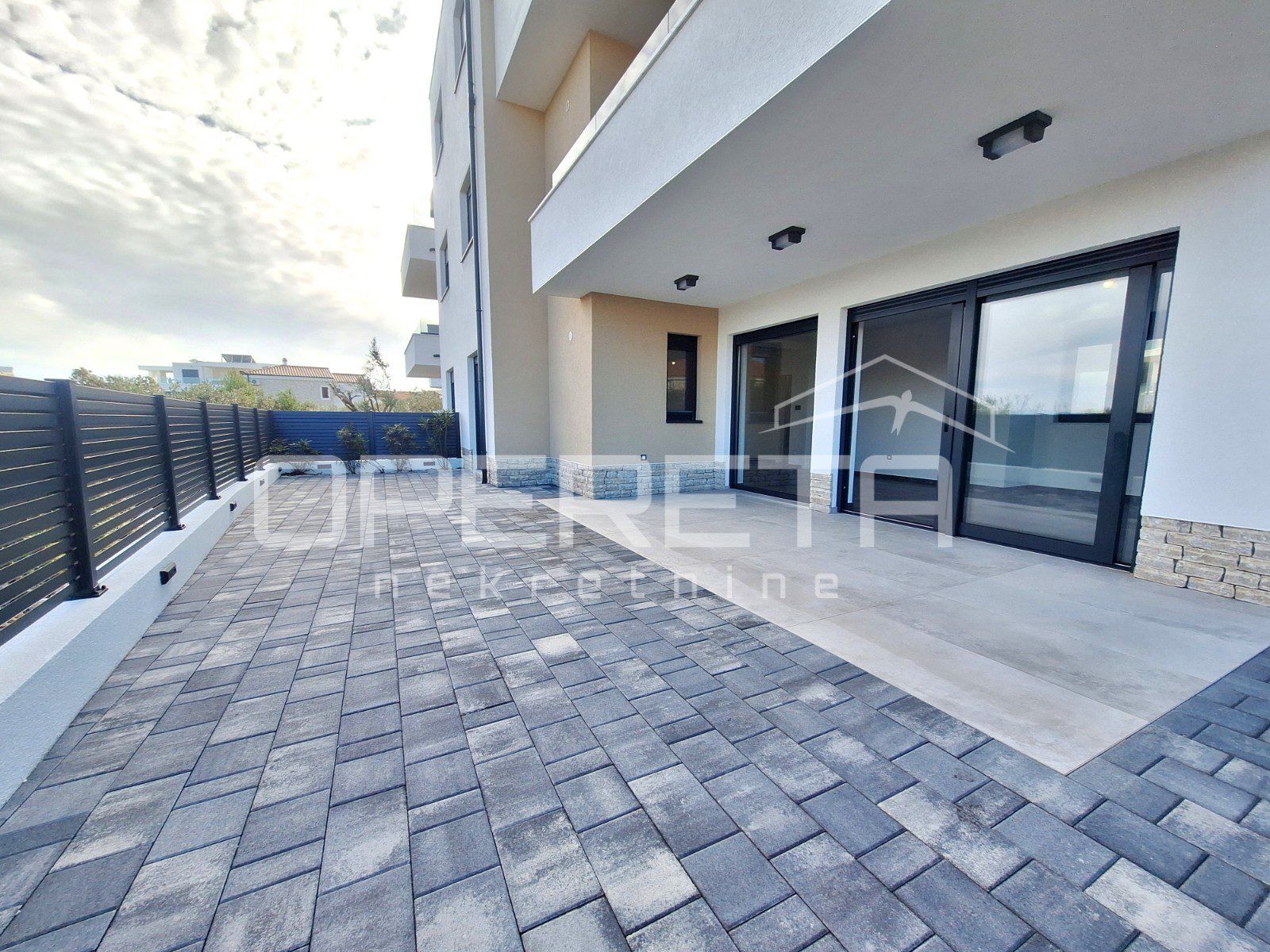 Luksuzan stan/apartman u novoizgrađenoj urbanoj vili na jedinstvenoj lokaciji udaljenoj 300 m zračne linije od prekrasne plaže. Svijetao, prozračan i funkcionalnog tlocrta sastoji se od “open space” prostranog dnevnog boravka s kuhinjom i blagovaonicom te izlazom na terasu, 2 spavaće sobe, kupaonice s wc-om i hodnika, a pripadaju mu i 2 vanjska parkirna mjesta te dvorište/vrt BRP 85 m2. Energetskom učinkovitošću ( razred A+), kvalitetom projekta i gradnje, opremom i tehnologijom ( i njihovim upravljanjem) zadovoljeni najviši standardi. Kvalitetna stolarija, rolete s električnim podizanjem i komarnicima, protuprovalna i protupožarna vrata, svaka soba i dnevni boravak opremljeni su klima uređajem i TV priključkom. Trgovine i ostali sadržaji na svega 1-2 min vožnje. Luksuz okružen mirom i očaravajućim prirodnim ljepotama! Kupac je oslobođen plaćanja poreza na promet nekretnina, prodavatelj je tvrtka u sustavu PDV-a. Preporuka!
