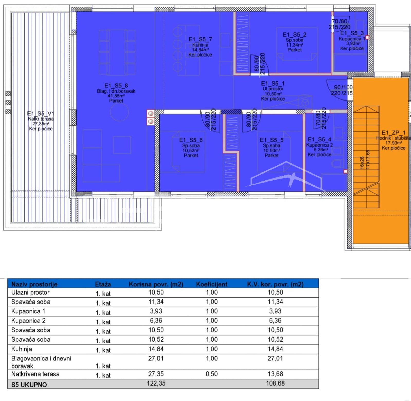 Ukupna neto površina stana s pripadajućim parkirnim mjestima iznosi 114 m².