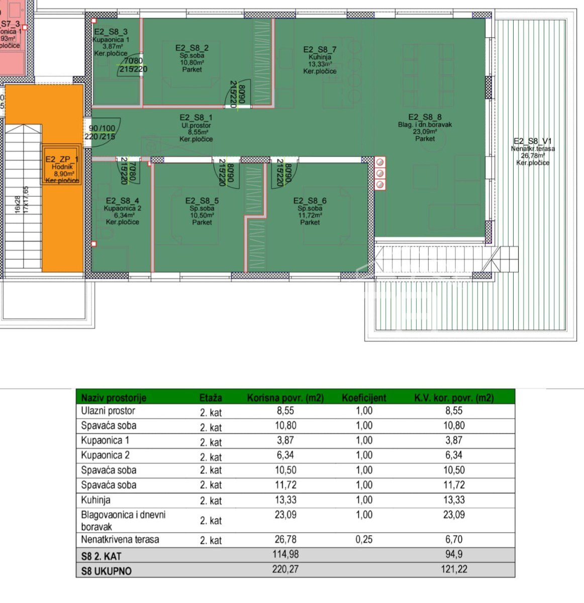 Ukupna neto površina stana s pripadajućim parkirnim mjestima iznosi 126 m².