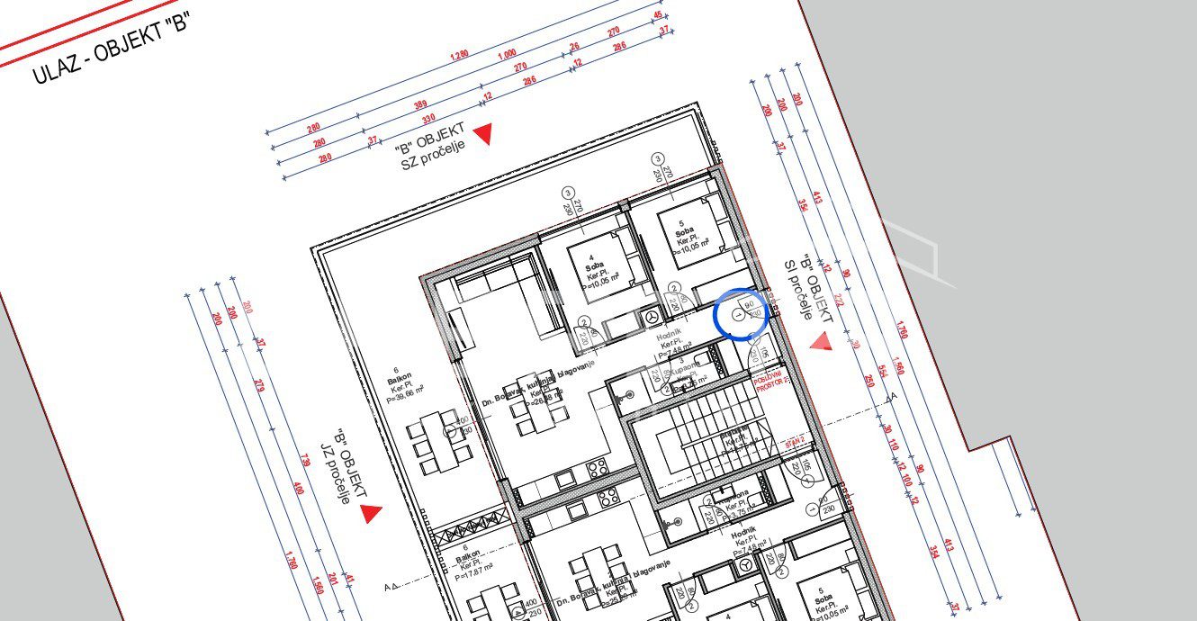 Objekt se gradi armiranobetonskom konstrukcijom, s vanjskom toplinskom izolacijom debljine 15 cm, Alu-troslojna podizna stolarija sa stop sol reflektirajućim, kvalitetnim keramičkim oblogama u svim prostorijama i protuprovalnim ulaznim vratima. Prostorije unutar stana su odvojene dvostrukom izolacijom knauf/kamena vuna koje ojačaju zvučnu i protupožarnu zaštitu.