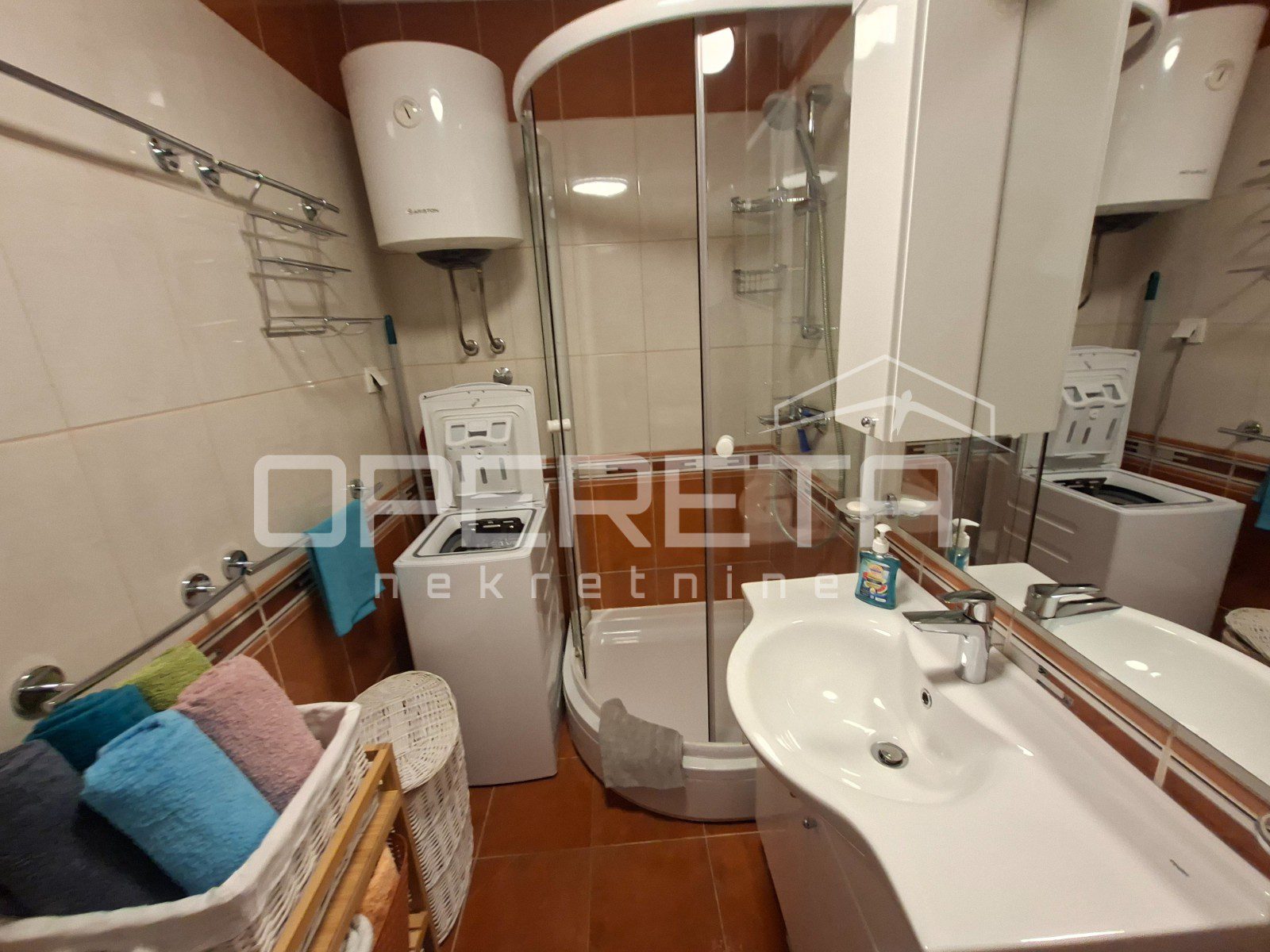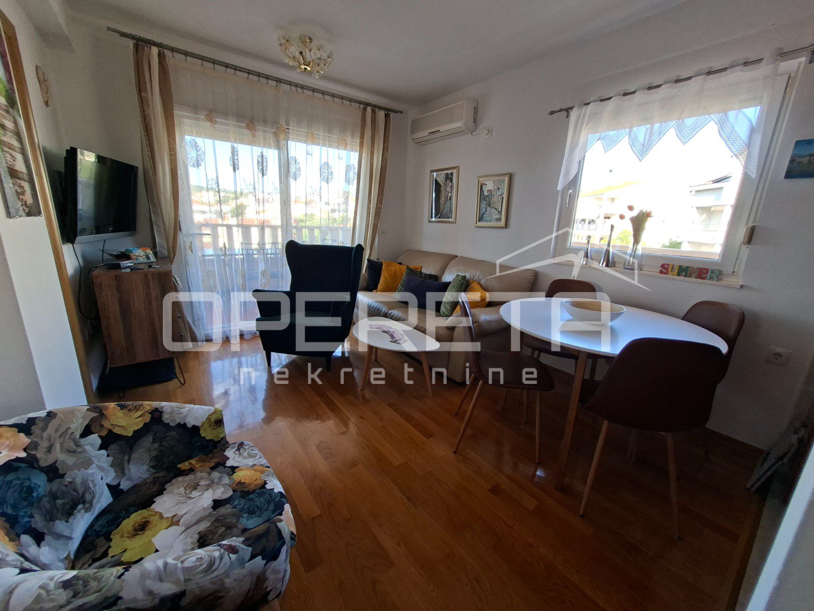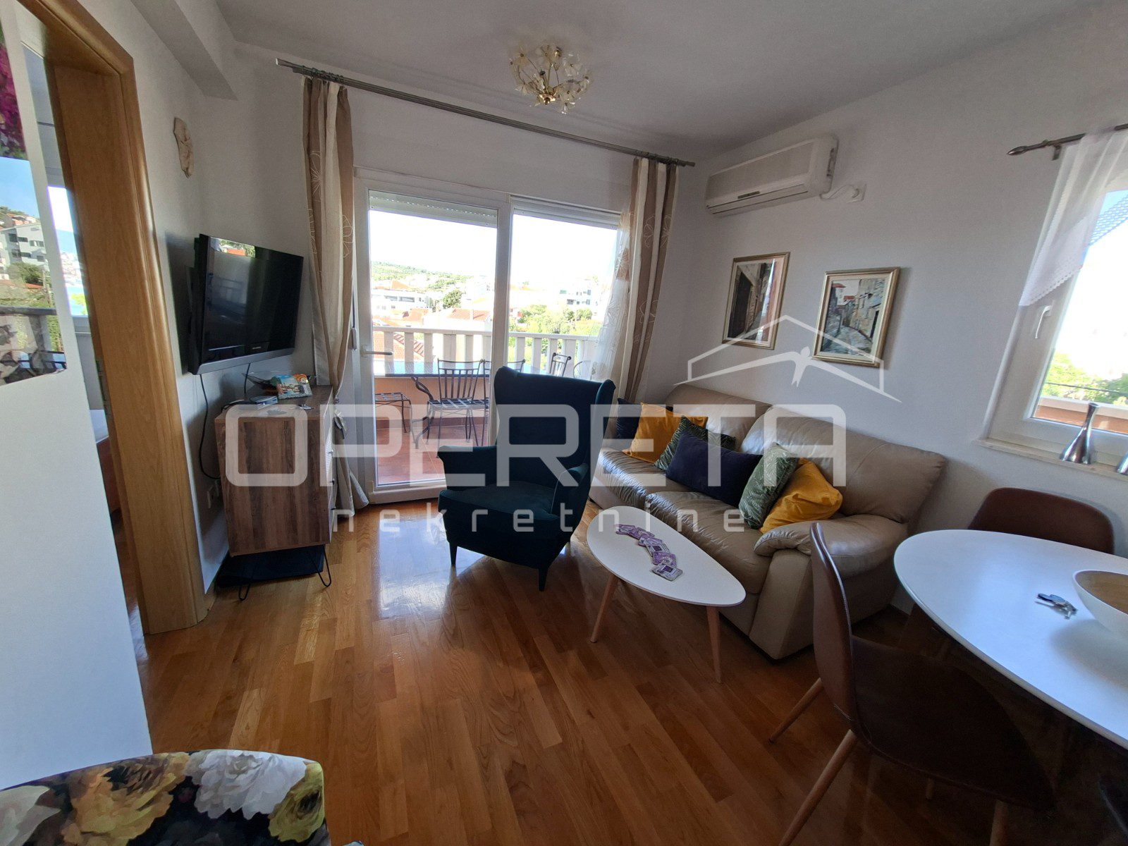 Apartman je u potpunosti namješten i opremljen klima uređajem te se prodaje s pripadajućim garažnim parkirnim mjestom u podrumu zgrade.