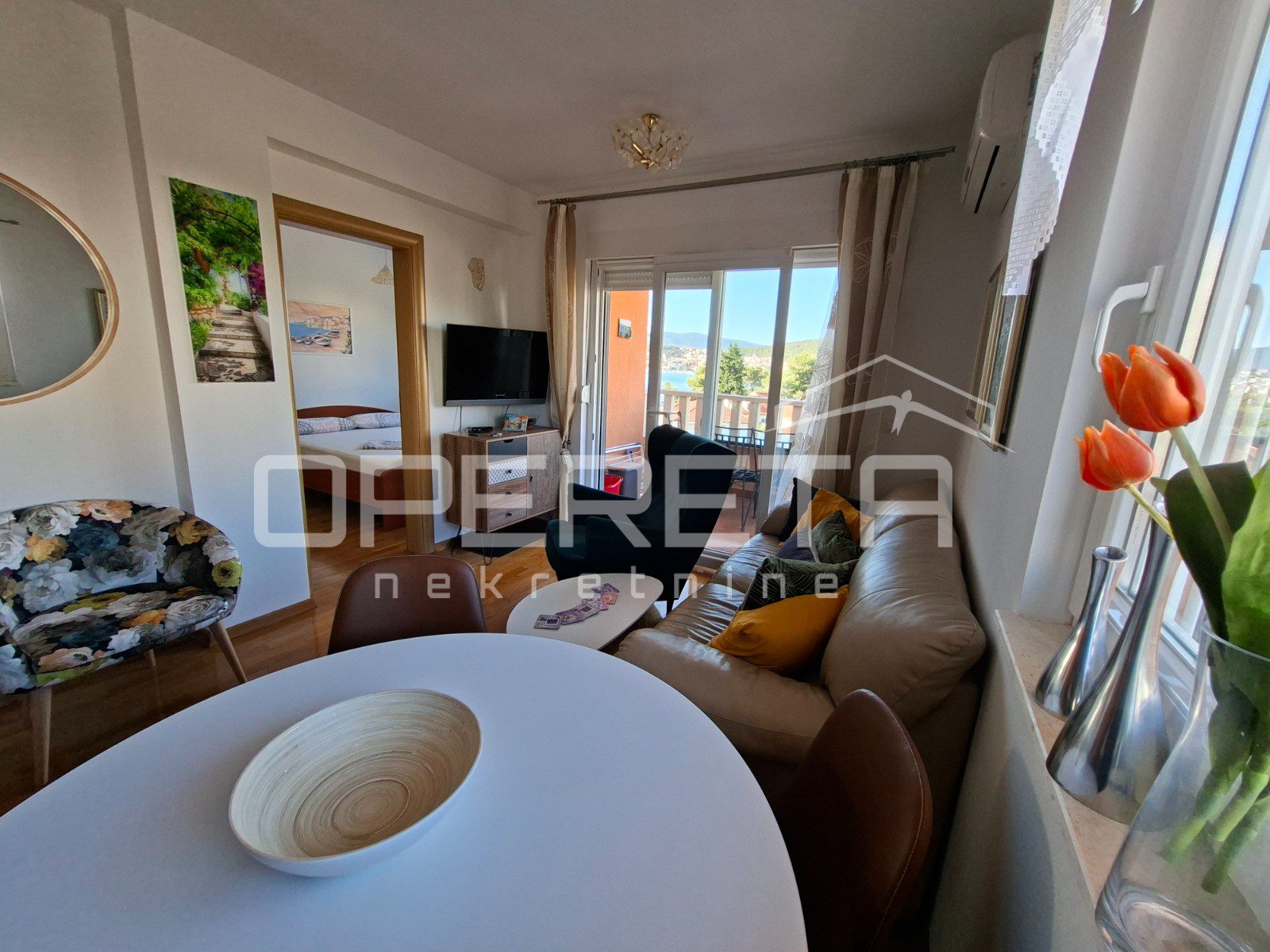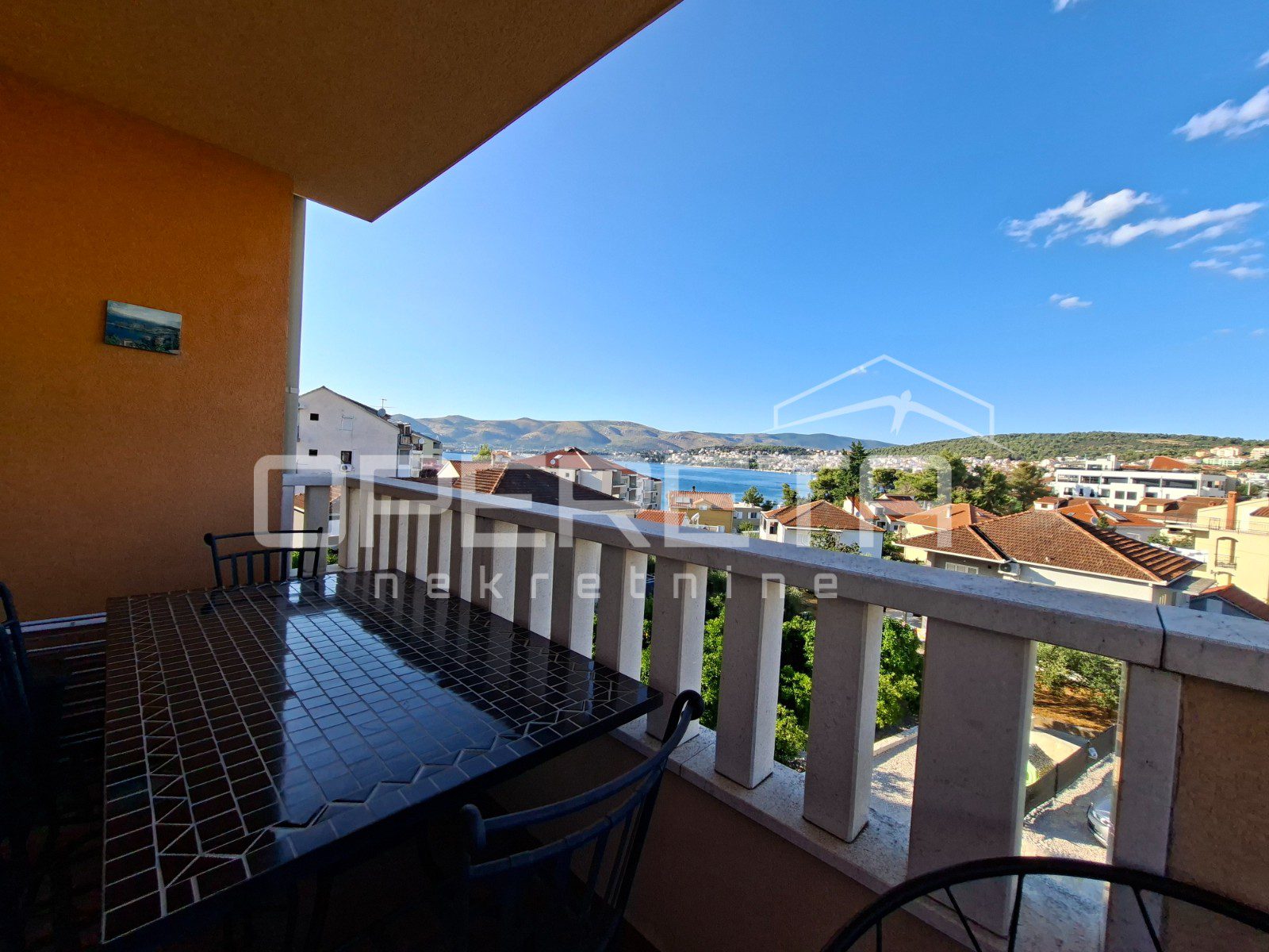 Iz dnevnog boravka izlazi se na prostrani balkon s otvorenim pogledom na more.
