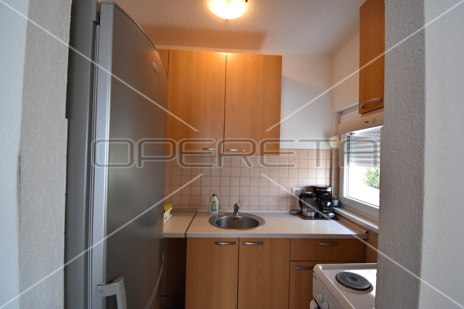 Stan se nalazi na 1.katu zgrade i sastoji se od kuhinje, blagovaonice i dnevnog boravka, te hodnika s ugradbenim garderobnim ormarom, kupaonice s toaletom i spavaće sobe.