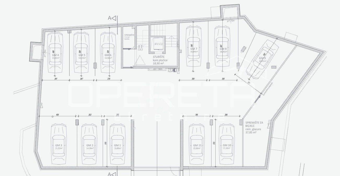 Stanu pripadaju 3 garažna parkirna mjesta i spremište. Stanari imaju pristup zajedničkom fitnessu i wellnessu.