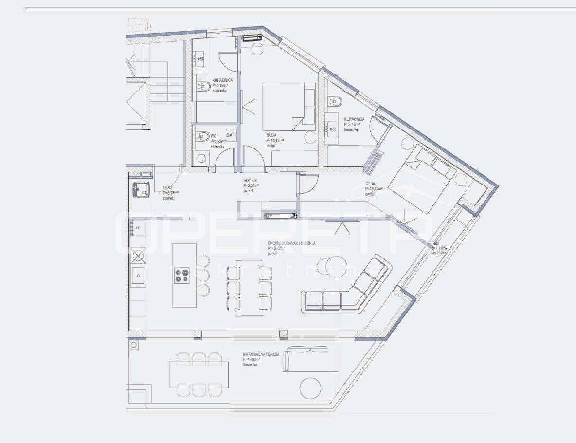 U mirnoj rezidencijalnoj zoni Opatije, u kvalitetnoj novogradnji u završnoj fazi izgradnje, prodaje se vrhunski stan koji objedinjuje suvremeni dizajn, funkcionalan raspored i najnovije tehničke standarde.