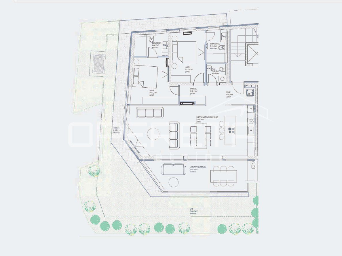 U mirnoj rezidencijalnoj zoni Opatije, u visoko kvalitetnoj novogradnji koja se nalazi u završnoj fazi izgradnje, na prodaju je prostran stan u prizemlju, koji objedinjuje suvremeni dizajn, funkcionalan raspored i najnovije tehničke standarde.