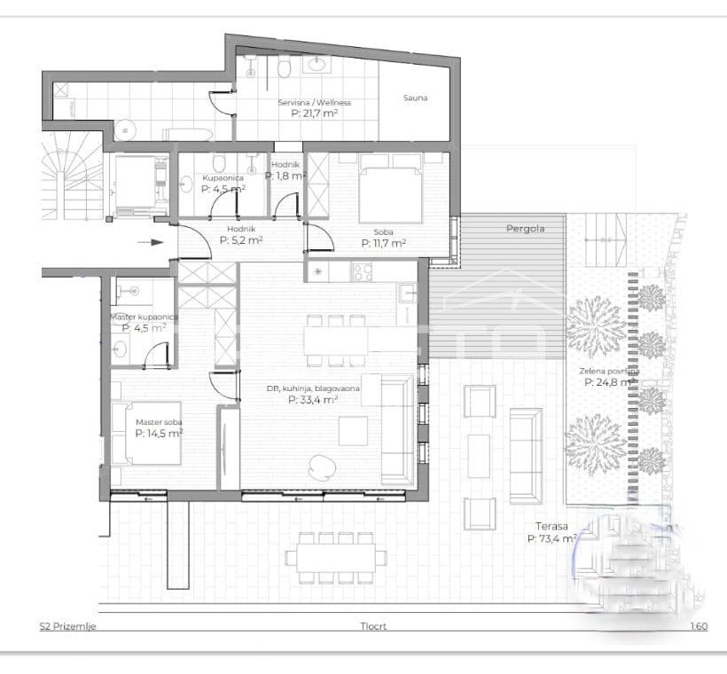 Ukupna površina svih vanjskih pripadaka iznosi 122 m², što ovu nekretninu čini iznimno atraktivnom, prostranom i funkcionalnom.