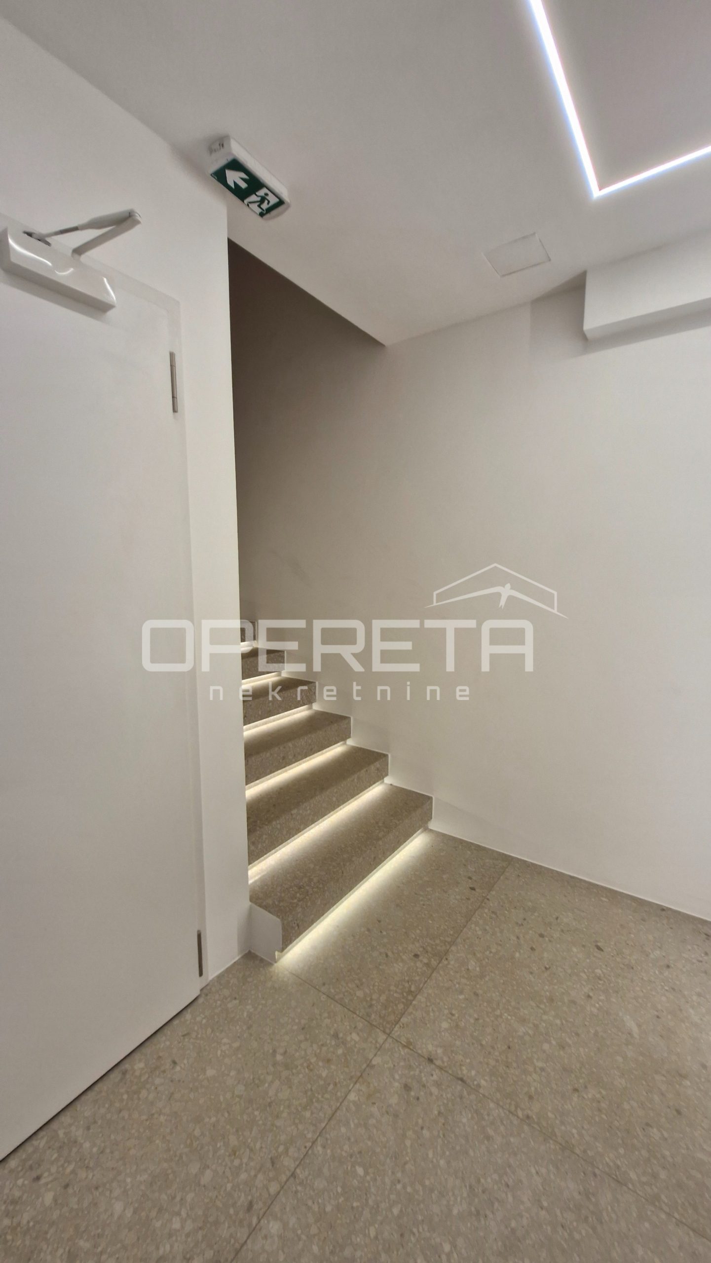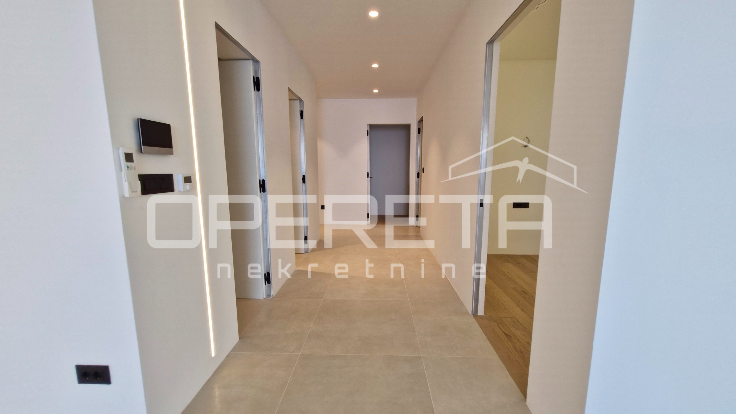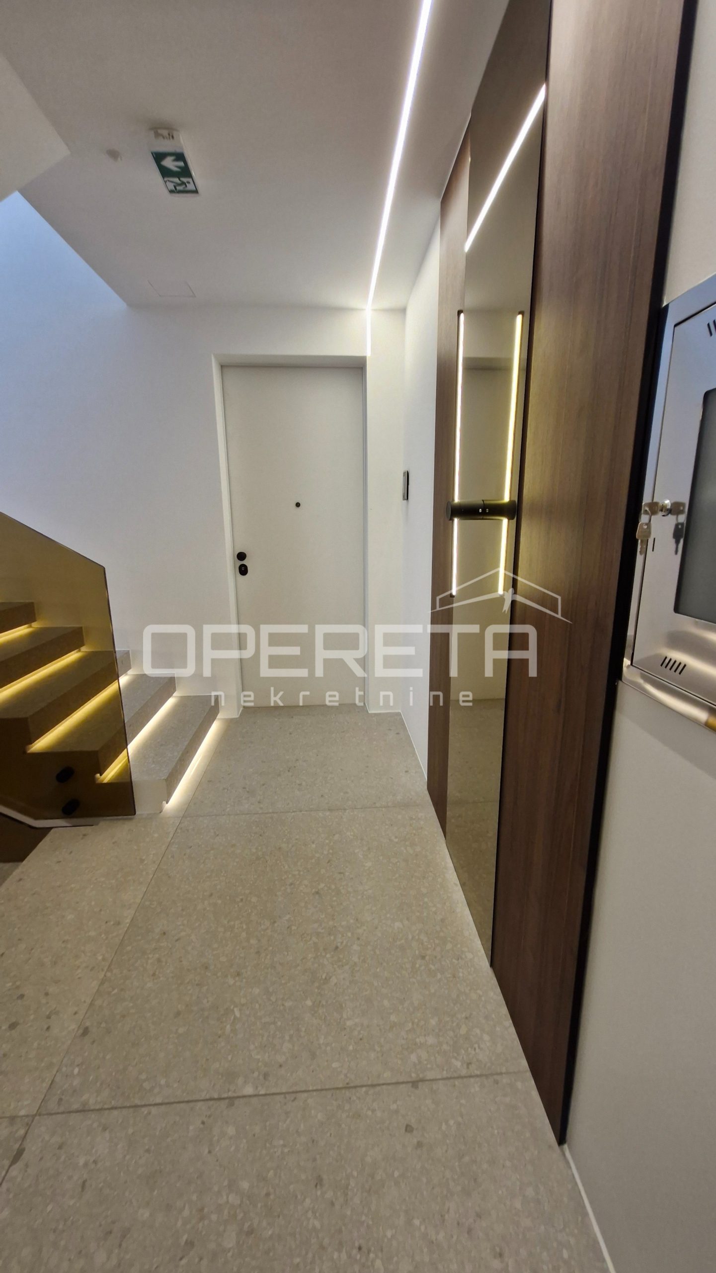 Cijeli prostor građen je i opremljen prema najvišim standardima: u stanu je provedeno podno grijanje, ugrađena je vrhunska keramika i sanitarna oprema, klimatizacija je osigurana u svim prostorijama, a velika aluminijska klizna stijena omogućuje obilje prirodnog svjetla i povezuje interijer s vanjskim prostorom. Stan ima i protuprovalna vrata za dodatnu sigurnost.