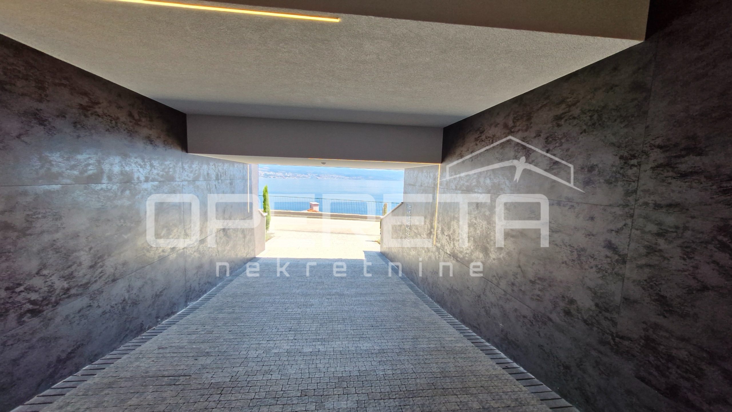 Na prodaju je luksuzno opremljen stan površine 144 m², smješten na drugom katu moderne urbane vile s liftom koji vodi izravno iz garaže. Nalazi se na izuzetno mirnoj i traženoj lokaciji u Opatiji, svega 300 metara od mora, plaža i šetnice Lungomare.
