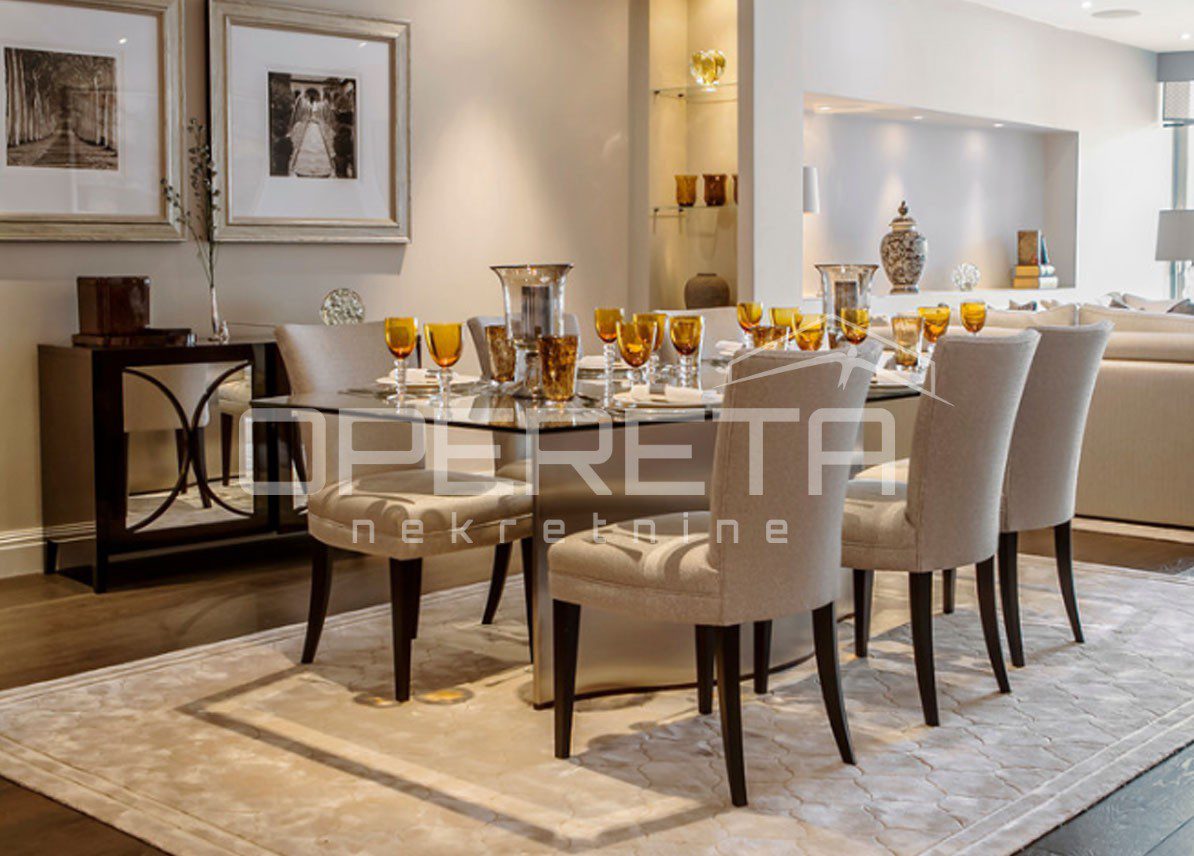 Sastoji se od hodnika, dnevnog boravka, kuhinje, garderobe, tri spavaće sobe, predsoblja, dvije kupaonice, WC-a (ukupne površine 119.72 m2). Stanu pripada terasa površine, gornje parkirno mjesto, donje parkirno mjesto i spremište u suterenu ukupne površine, što čini sveukupnu površinu stana i pripadaka od 158 m2.