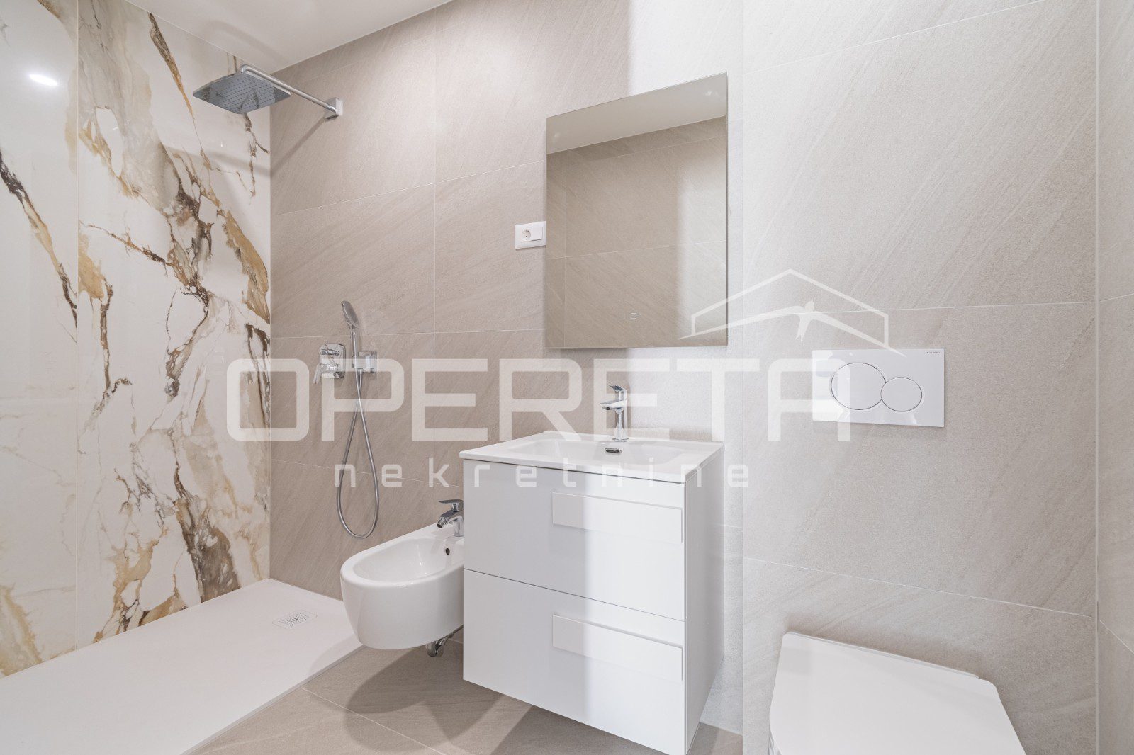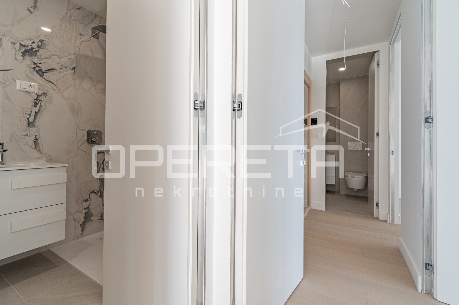 Stanovi su opremljeni ALU SHÜCO vanjskom stolarijom s troslojnim staklima punjenima argon plinom, što osigurava izvrsnu izolaciju i energetski učinkovit dom. Unutarnji prostor je opremljen vrhunskim sanitarnim uređajima marke HANSGROHE i modernim tuš kabinama NOVELLINI. Za podne obloge koristi se talijanska keramika MIRAGE I. klase, koja dodaje dašak sofisticiranosti svakom kutku stana.