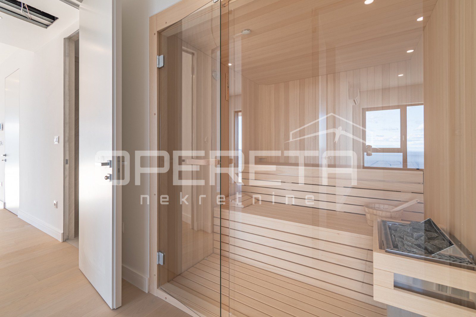 Dodatnu udobnost pruža podno grijanje u kupaonicama i dnevnim boravcima, koristeći IC tehnologiju na niskoj voltaži s malom potrošnjom električne energije. Terase su opremljene staklenim ogradama, pružajući pogled na okolni pejzaž. Ulazna protuprovalna vrata i unutarnja stolarija INTERCASA jamče sigurnost i visoku kvalitetu izrade.