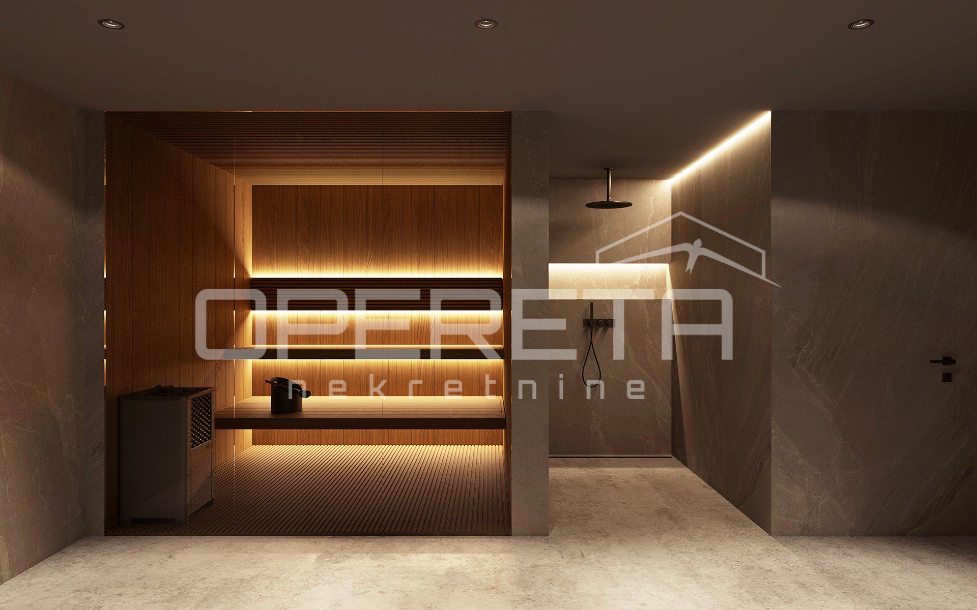 Uz stambeni prostor, vlasniku pripadaju tri privatna parkirna mjesta u podzemnoj garaži, iz koje se liftom izravno pristupa stanu, bez potrebe za izlaskom na vanjski prostor. Dodatno, stanarima su na raspolaganju zajednički prostori – fitness centar i wellness – te privatna spremišta u podrumskoj etaži.