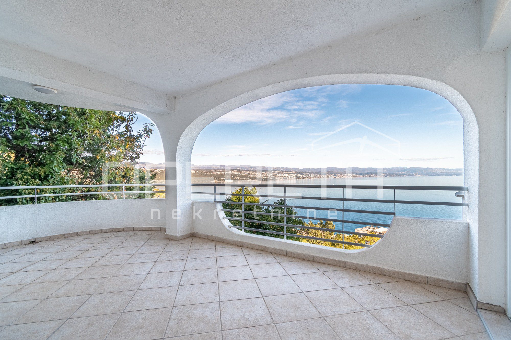 Kuća je smještena na padini, okružena zelenilom, a zahvaljujući velikim staklenim površinama i orijentaciji, stan obiluje dnevnim svjetlom. Pruža se pogled na Kvarner, otoke, Opatiju i Rijeku.