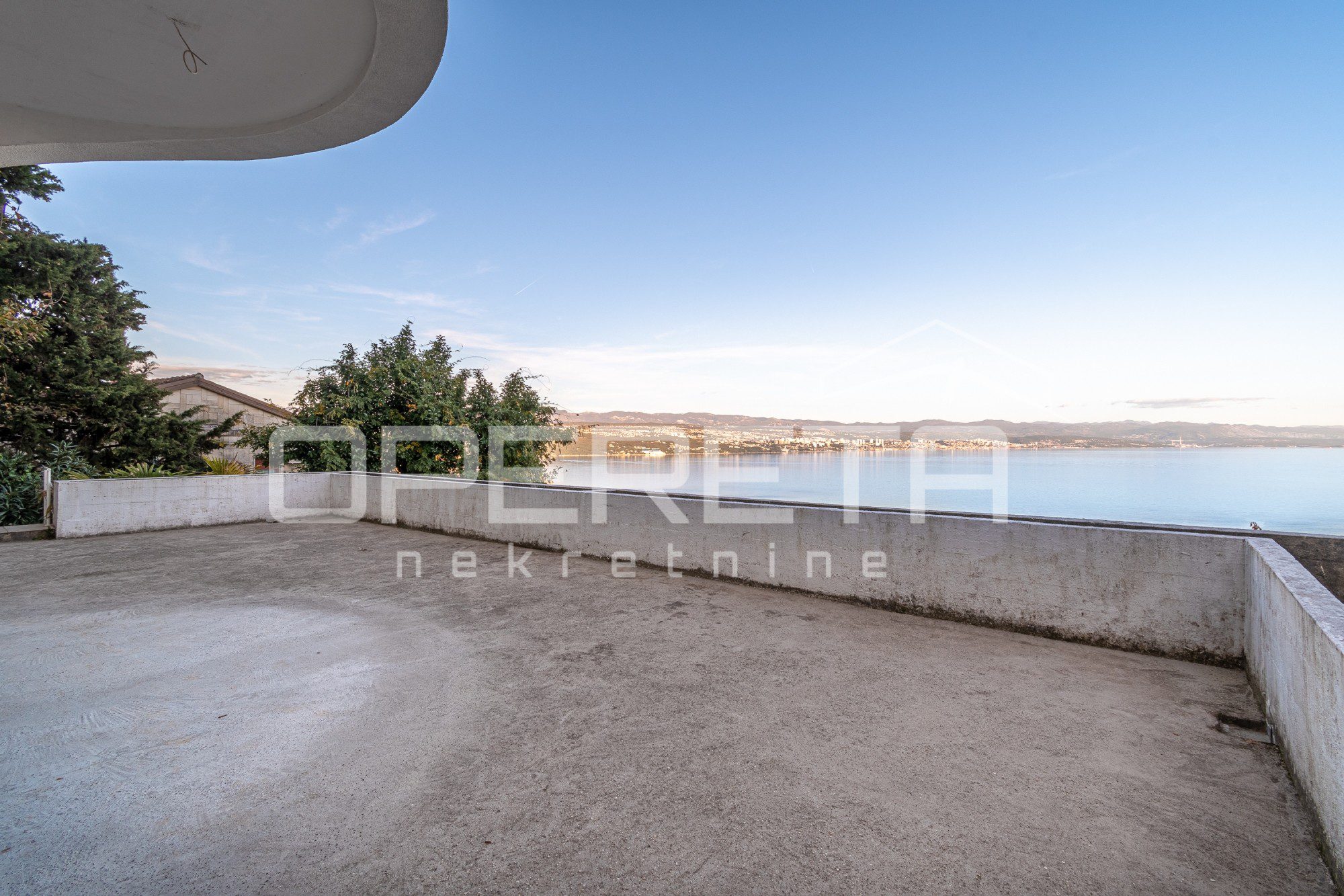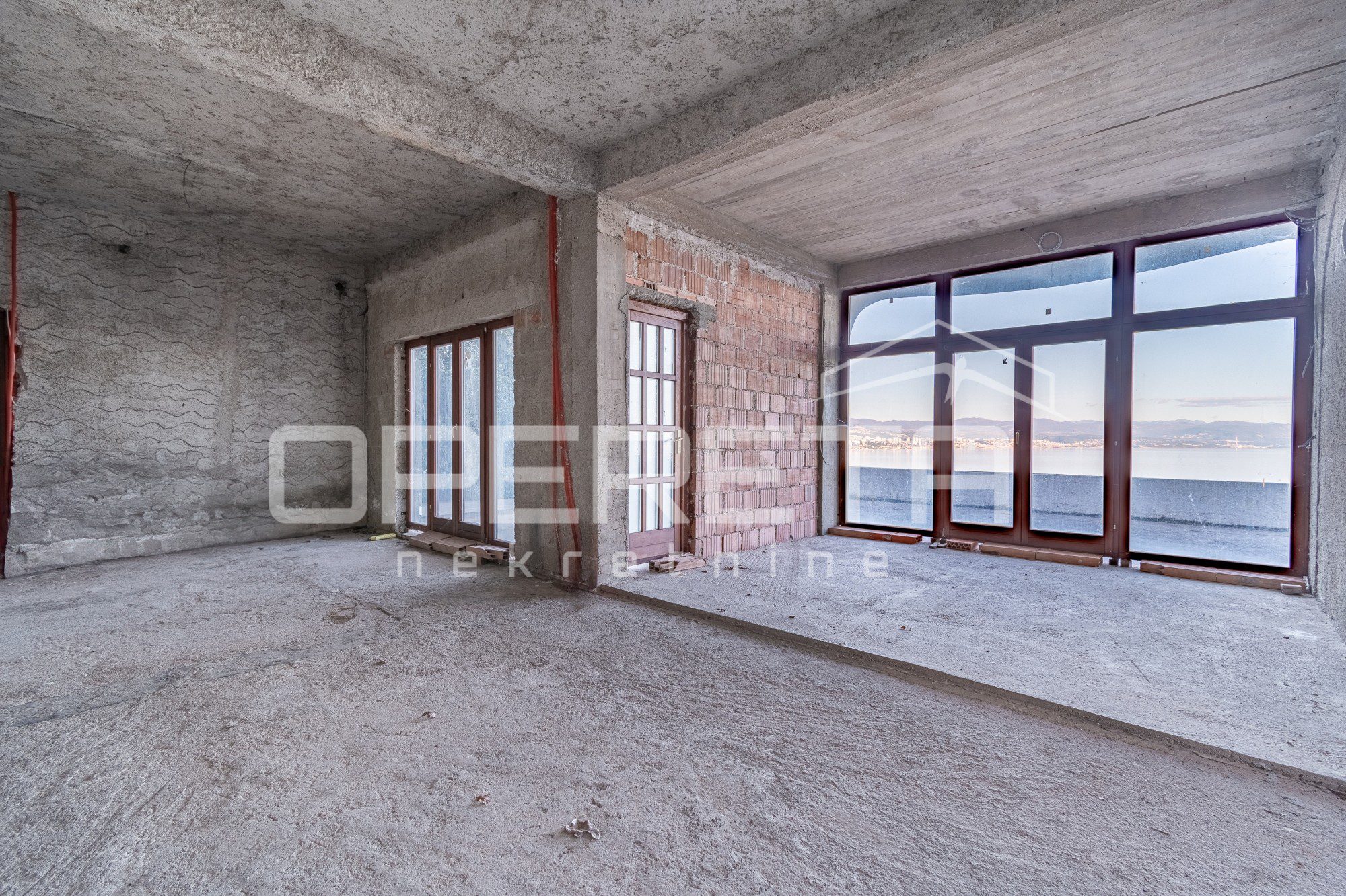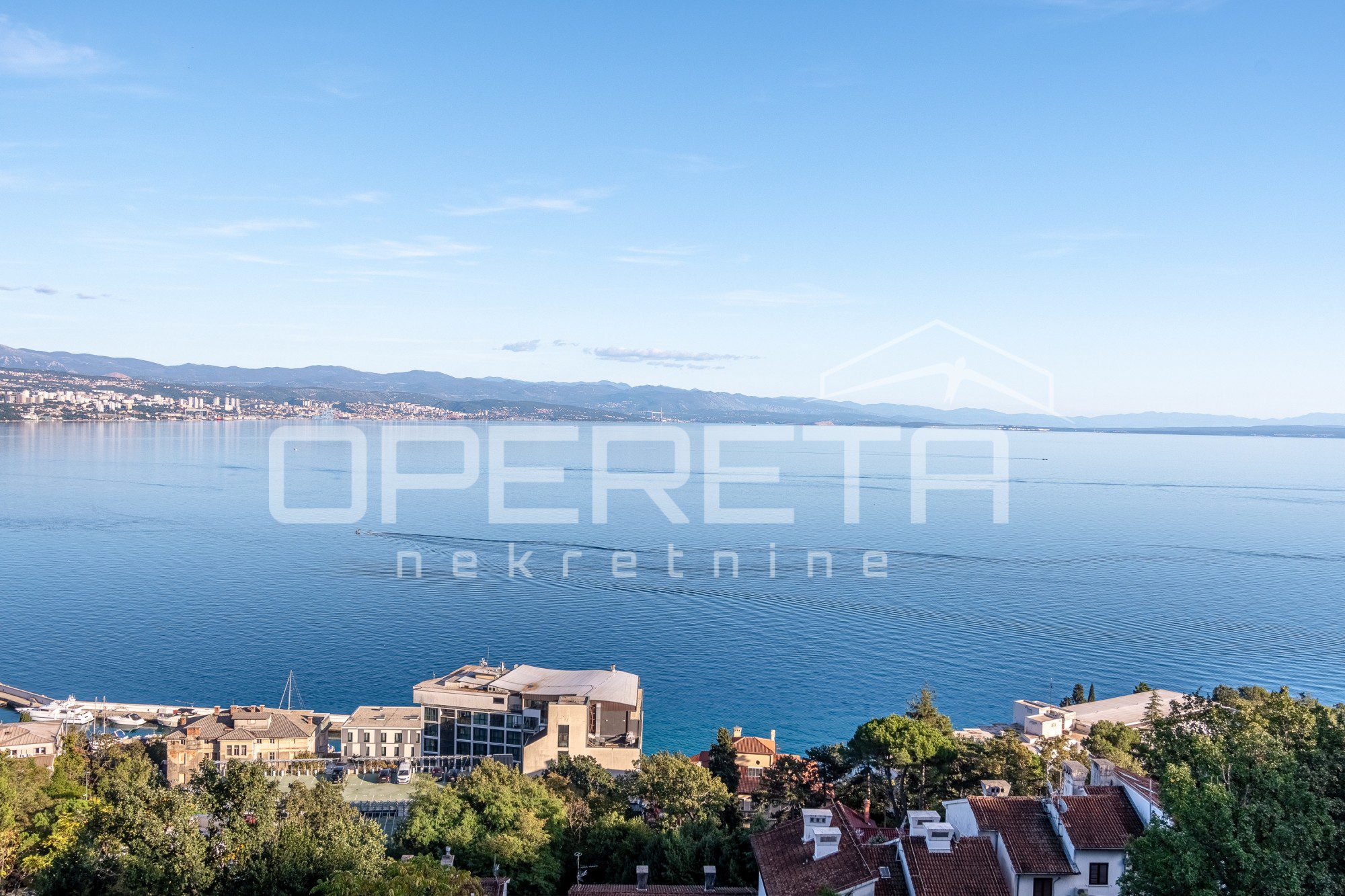 Lokacija je mirna i okružena zelenilom, a zahvaljujući velikim staklenim površinama i idealnoj orijentaciji, stan je ispunjen prirodnim svjetlom tijekom cijelog dana. Pogled s terasa obuhvaća čitav Kvarnerski zaljev, dio opatijske obale i grad Rijeku.