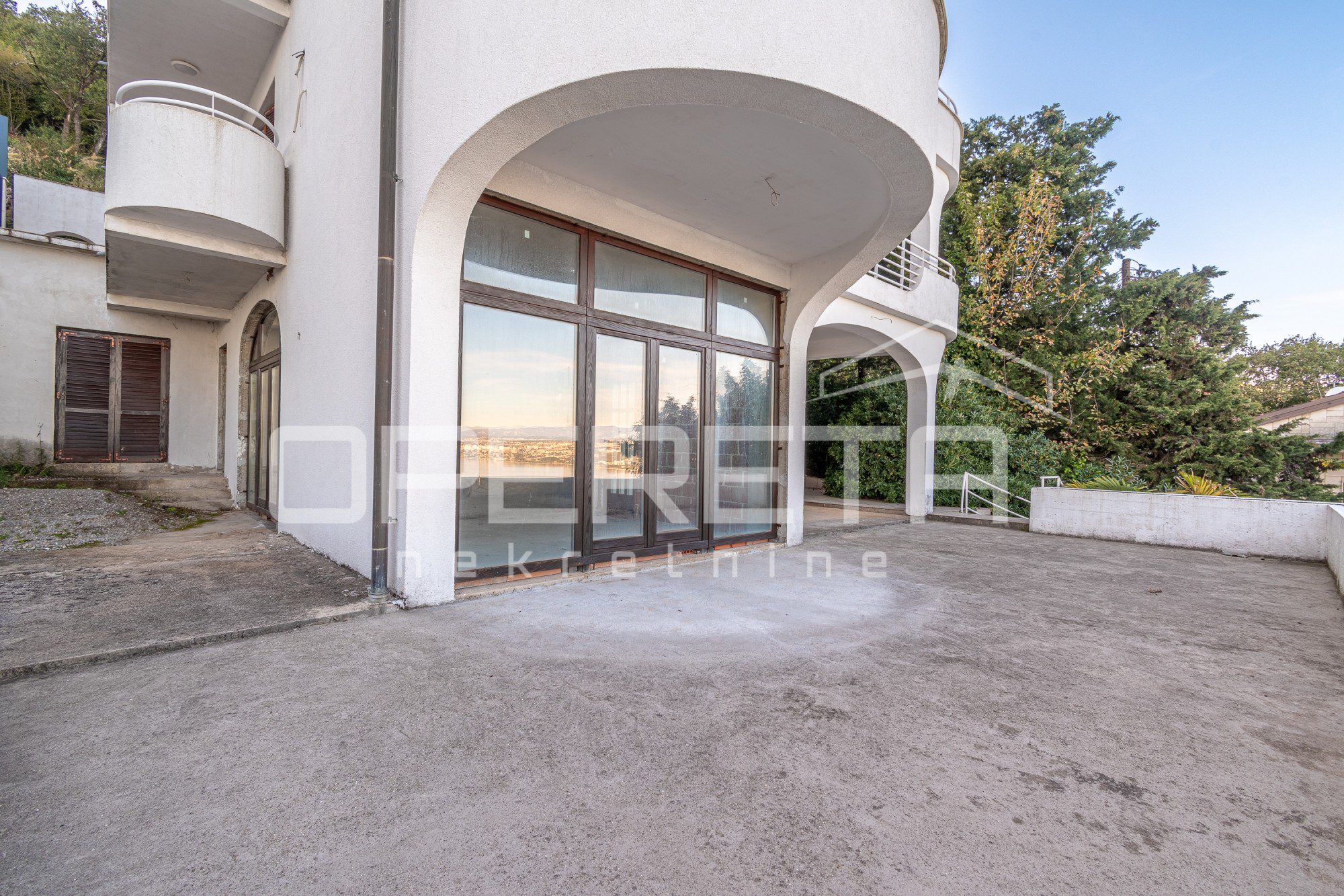 Prodaje se prostrani stan smješten u visokom prizemlju i suterenu manje vile na padini u Opatiji, s predivnim panoramskim pogledom na more i Kvarnerski zaljev.