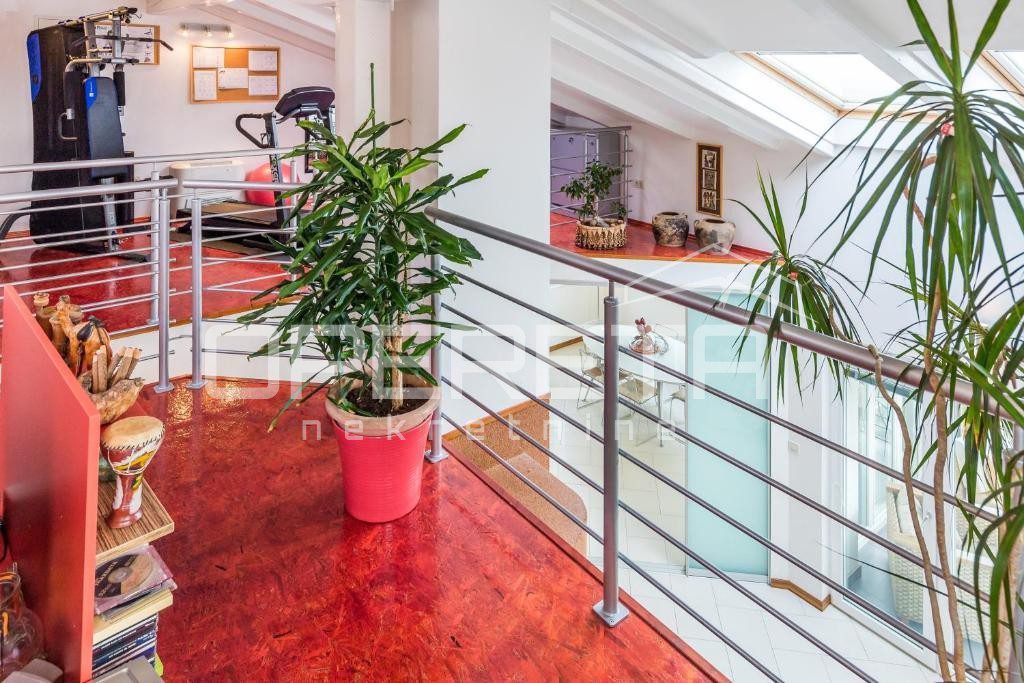 Na drugoj etaži, na galeriji, nalaze se radna soba, dodatna soba, kupaonica te nenatkrivena terasa, sveukupne površine 58 m². Ova etaža savršeno nadopunjuje stambeni prostor, nudeći dodatnu fleksibilnost – idealno za rad od kuće, goste ili opuštanje.