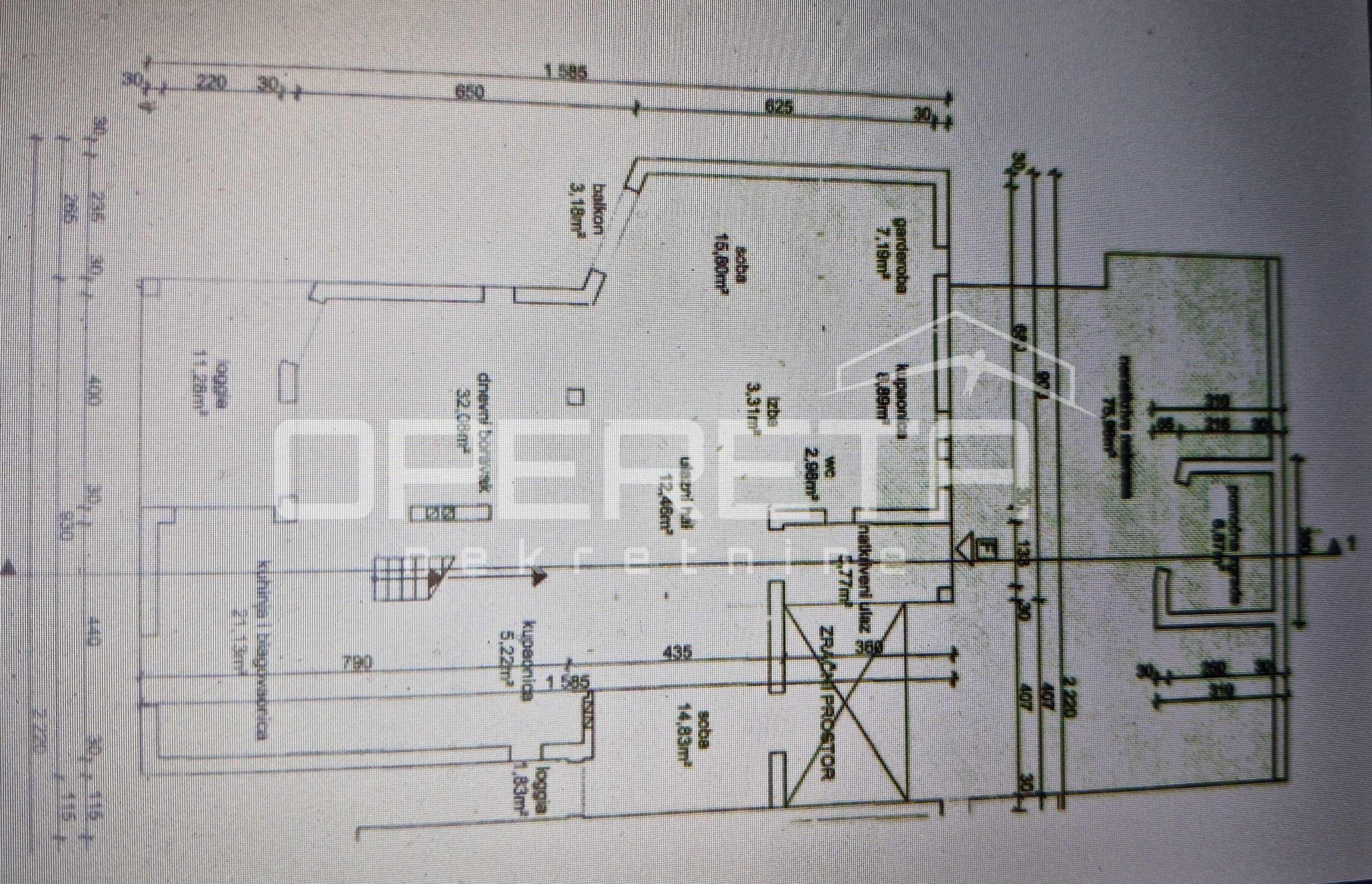 Ukupna površina stana, uključujući sve pripatke, iznosi impresivnih 222,20 m².