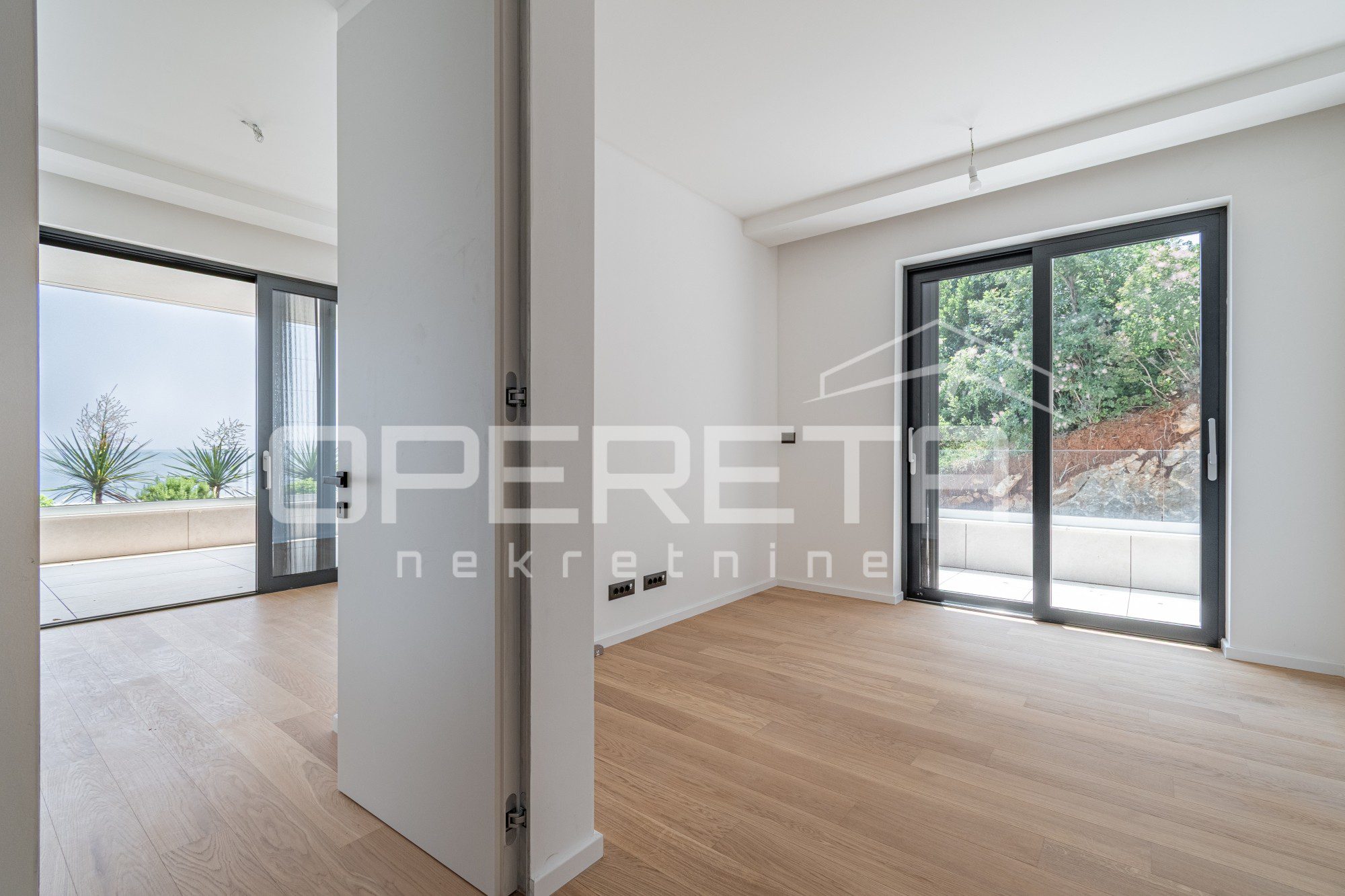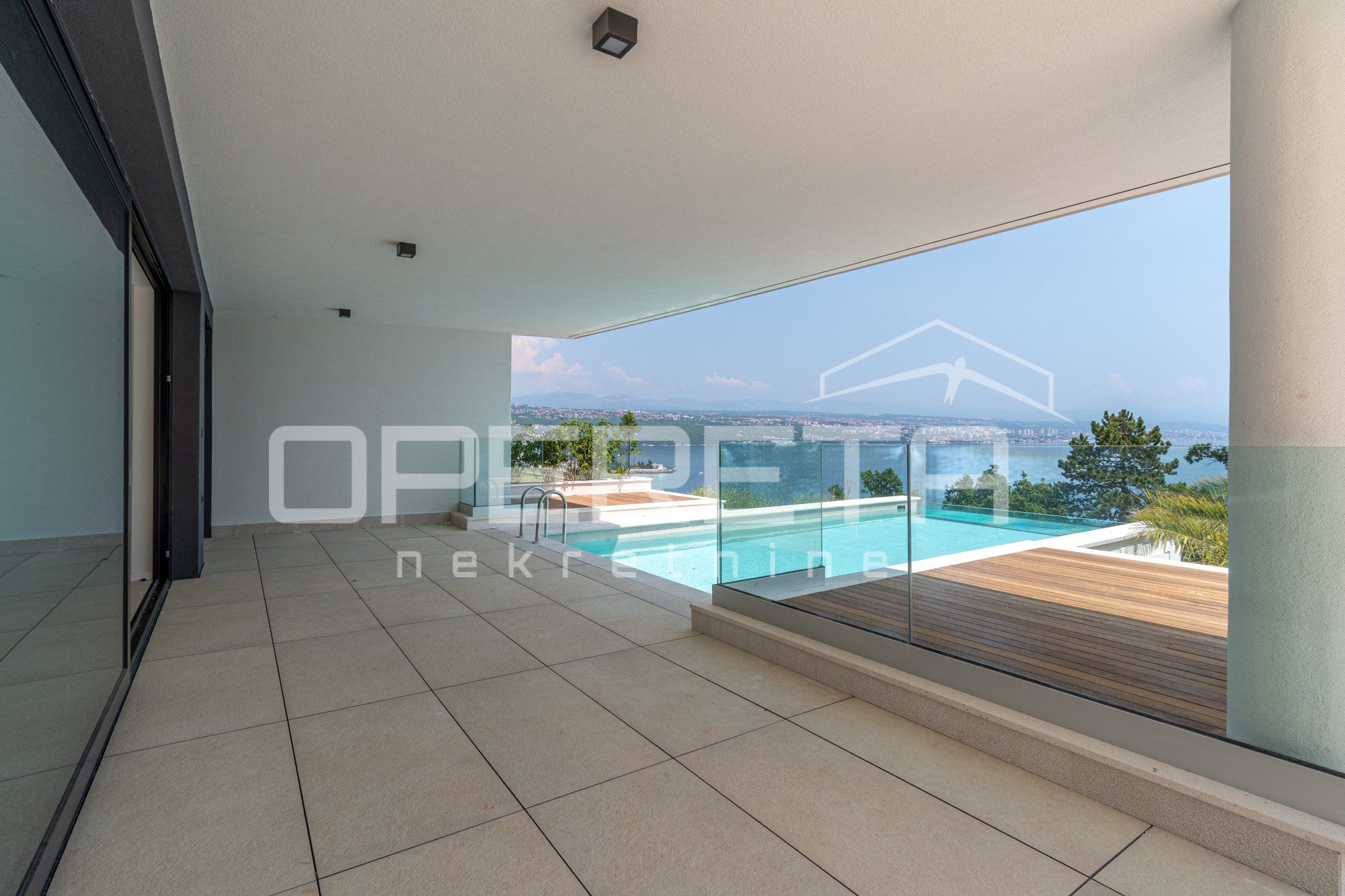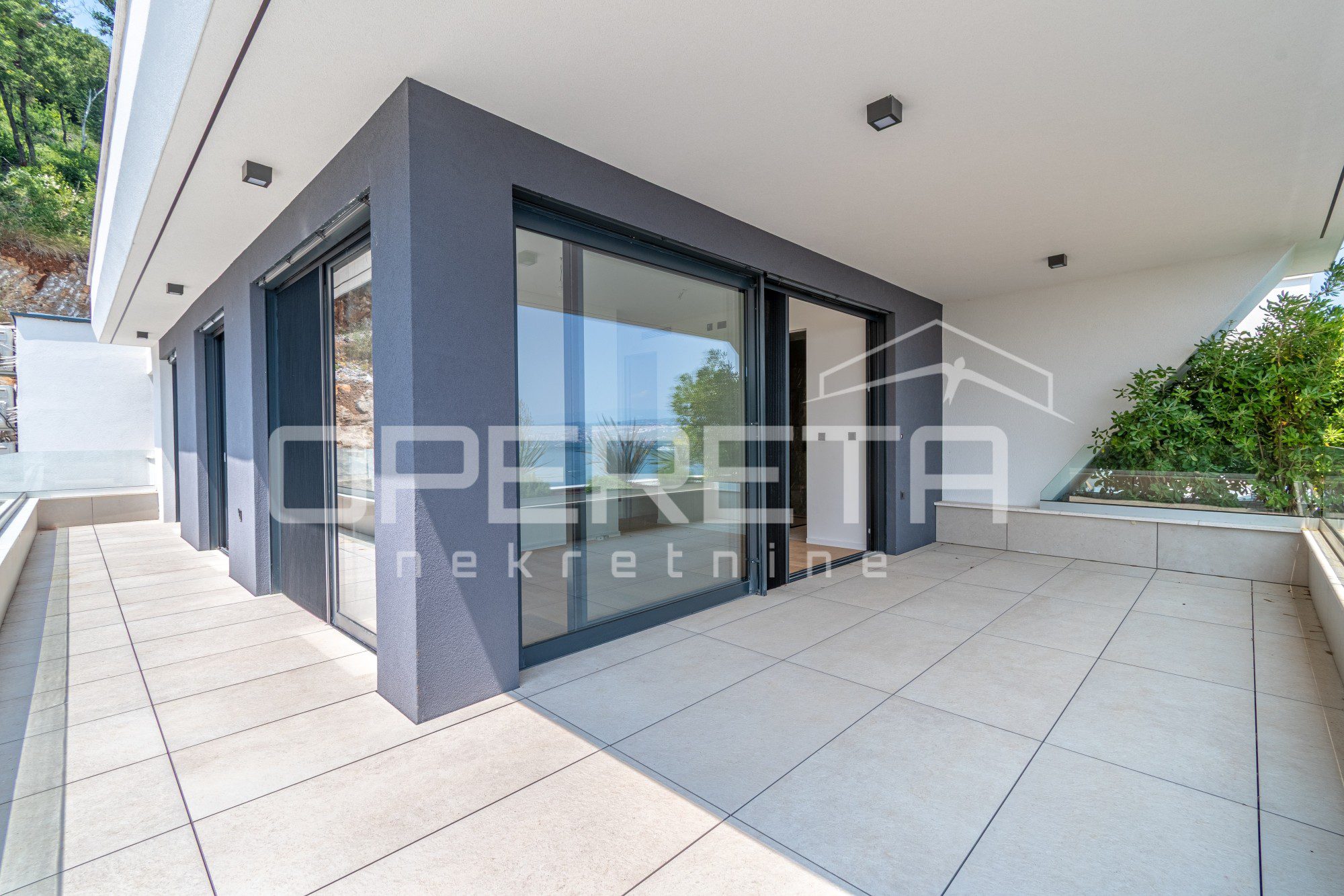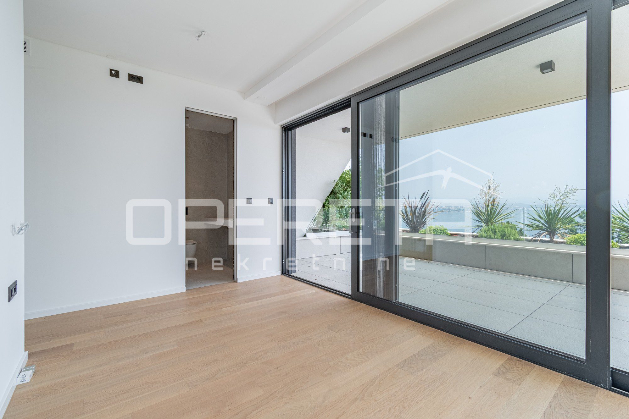 Vanjski prostor dodatno obogaćuje kvalitetu života: natkrivene i nenatkrivene terase i balkoni ukupne površine 45,91 m², kao i privatna okućnica površine 112 m², savršena za opuštanje i boravak na otvorenom. Poseban dragulj ove nekretnine je grijani bazen s protustrujnim sustavom veličine 22 m², okružen sunčalištem i bujnom mediteranskom vegetacijom, što stvara osjećaj vlastite oaze mira.
