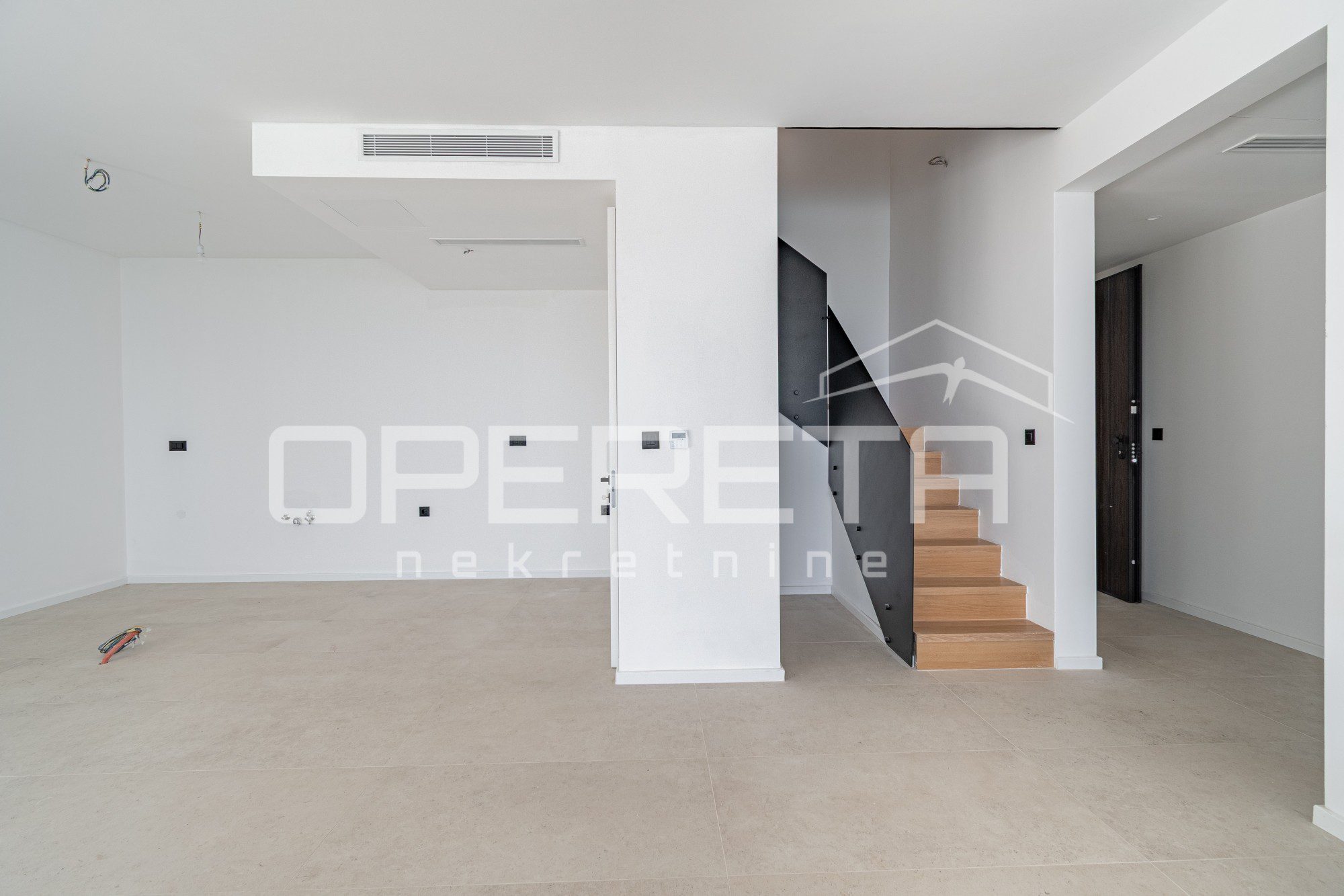 Na mirnoj i atraktivnoj lokaciji smještenoj u urbanoj vili suvremenog dizajna, prodaje se ekskluzivan stan koji se proteže kroz dvije etaže – prizemlje i prvi kat. Ova vrhunski projektirana nekretnina nudi izniman spoj funkcionalnosti, privatnosti i estetske elegancije.
