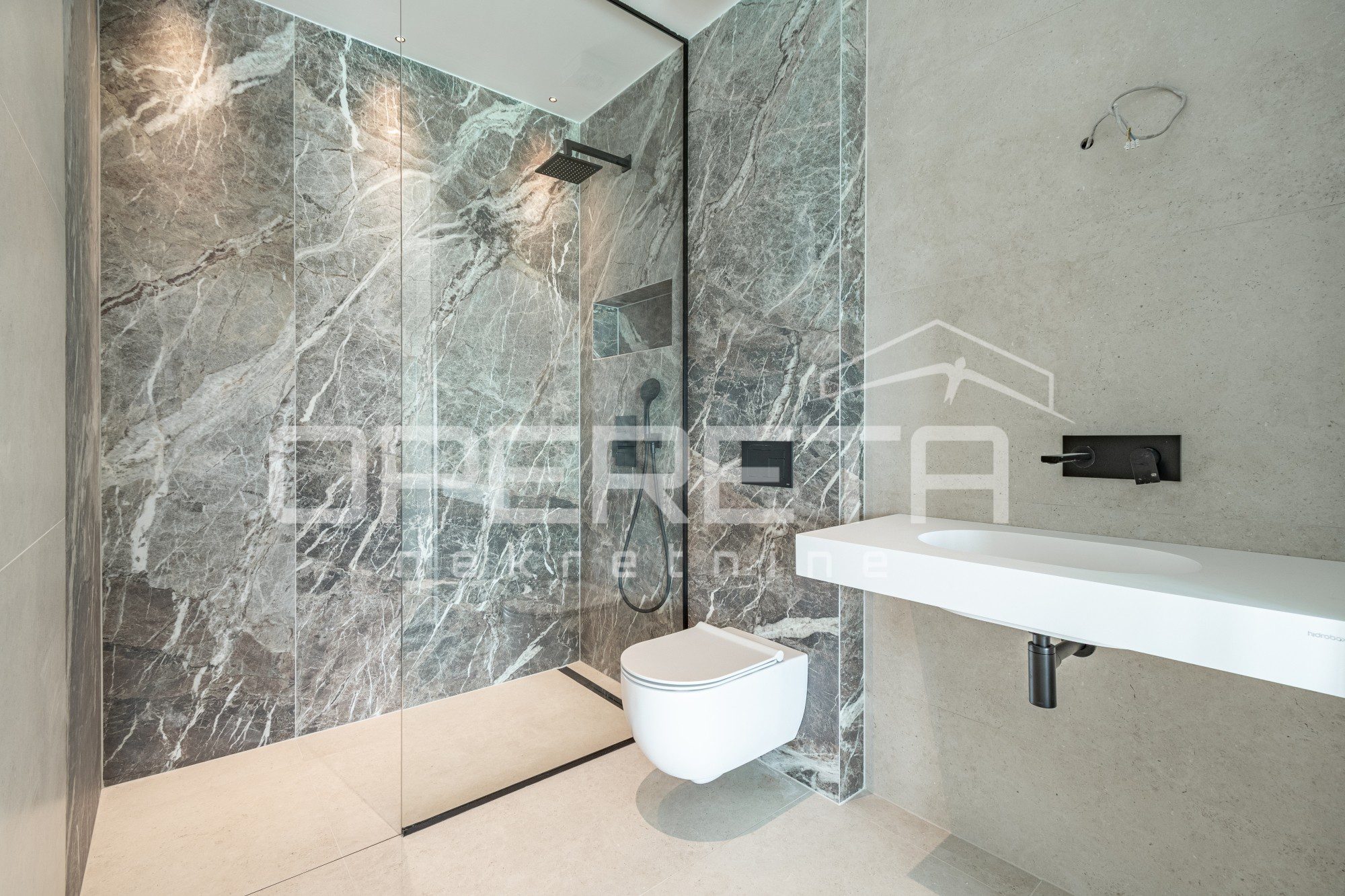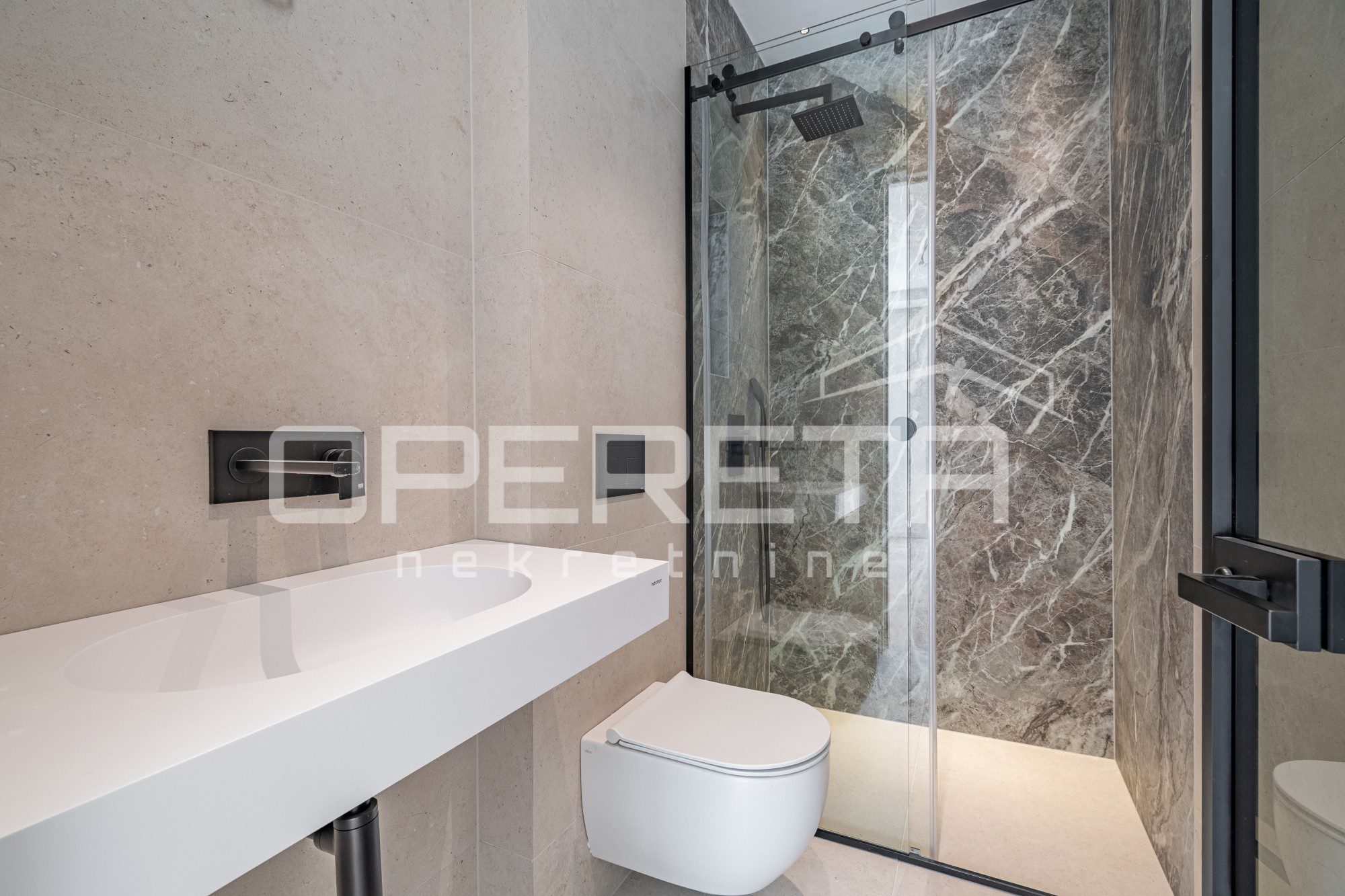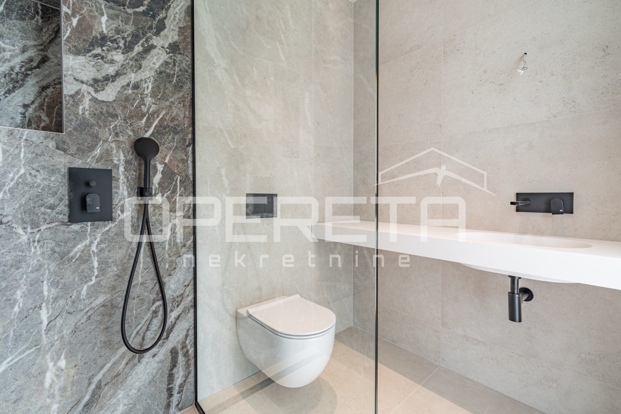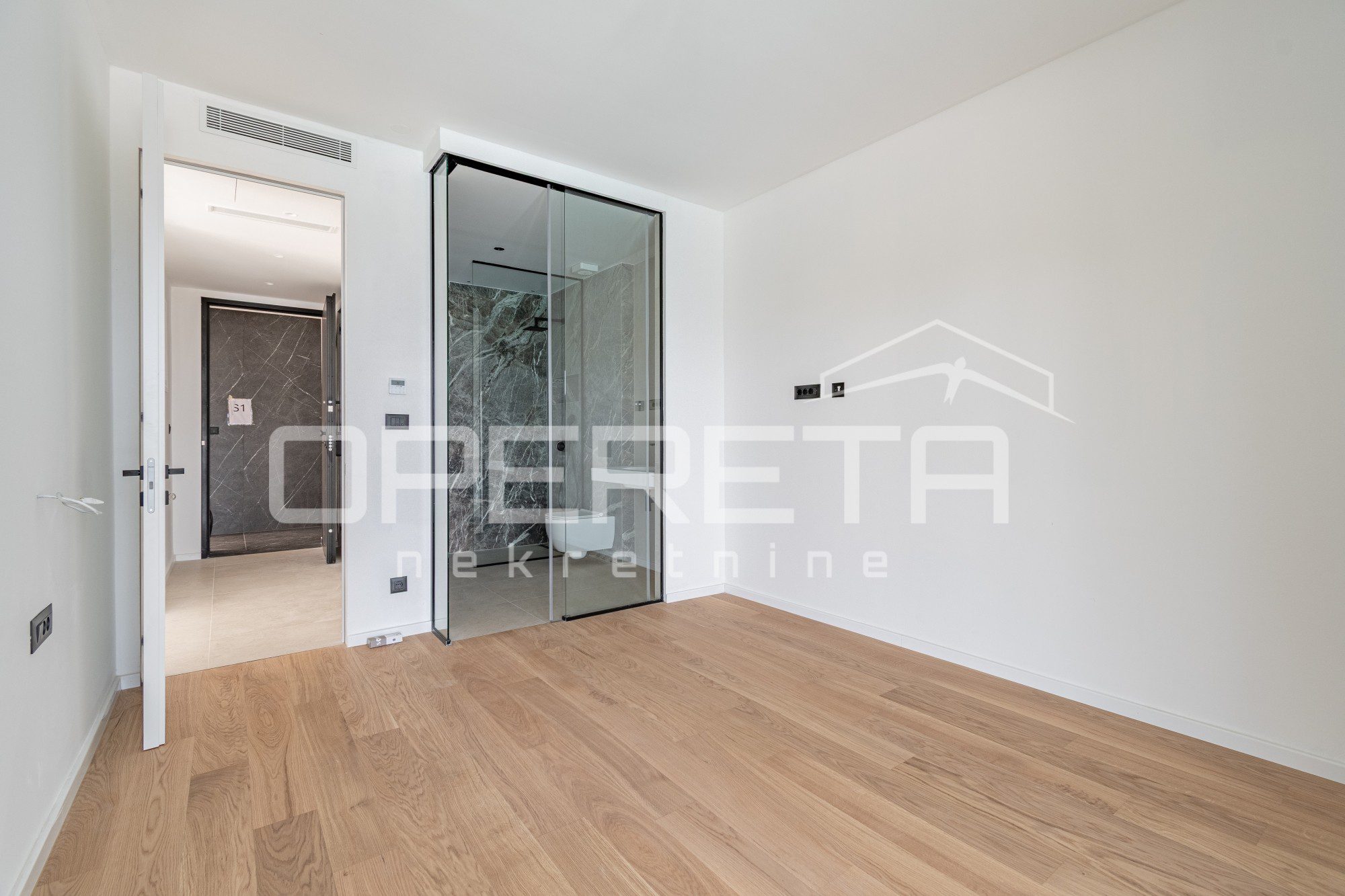 Stan je opremljen najmodernijim tehničkim rješenjima i najkvalitetnijim materijalima: troslojni hrastov parket, Schüco aluminijska stolarija s troslojnim staklom i električnim roletama, velike klizne stijene, podno grijanje putem dizalice topline, kao i ventilirana fasada koja osigurava energetsku učinkovitost i estetsku vrijednost.