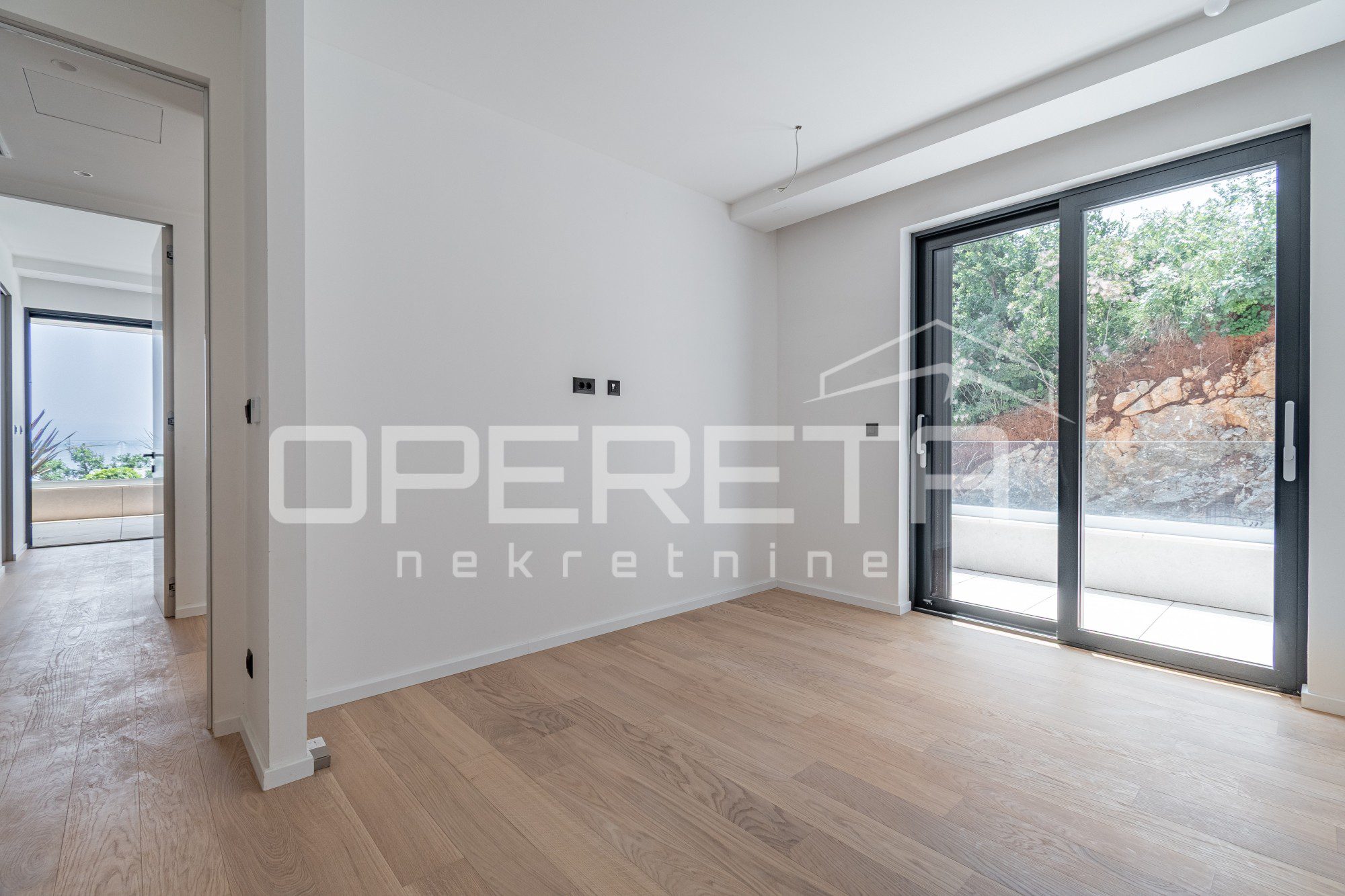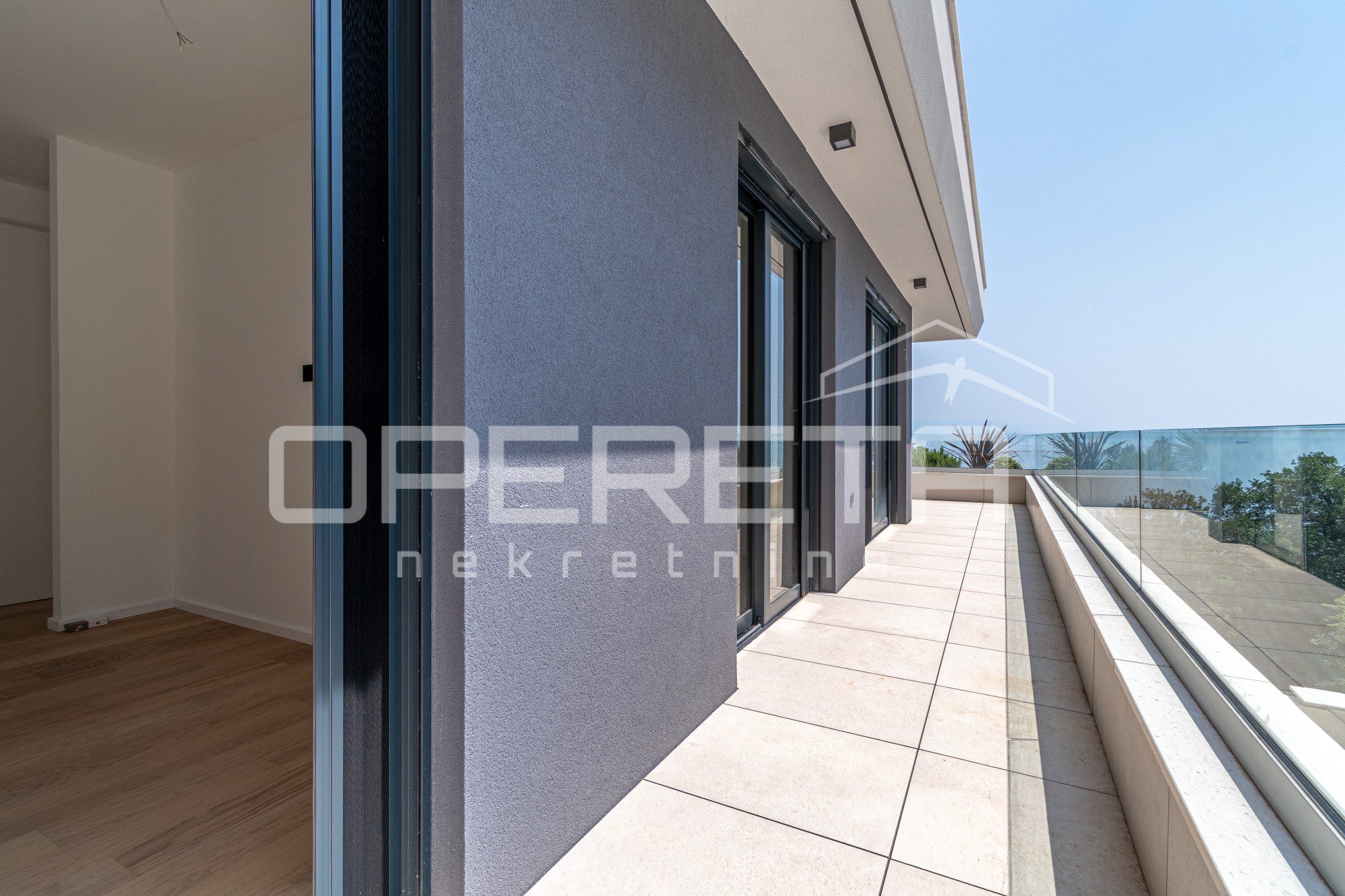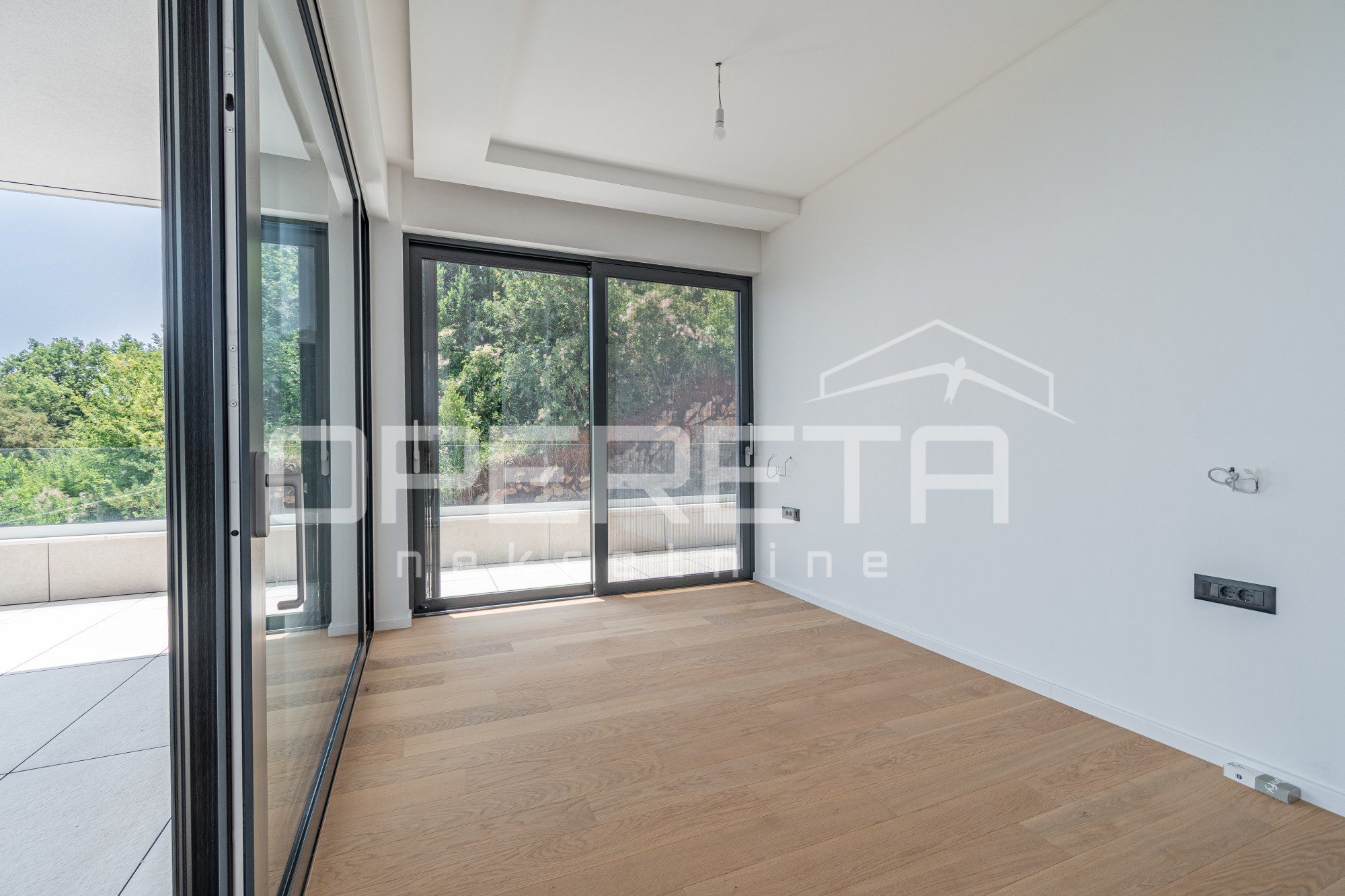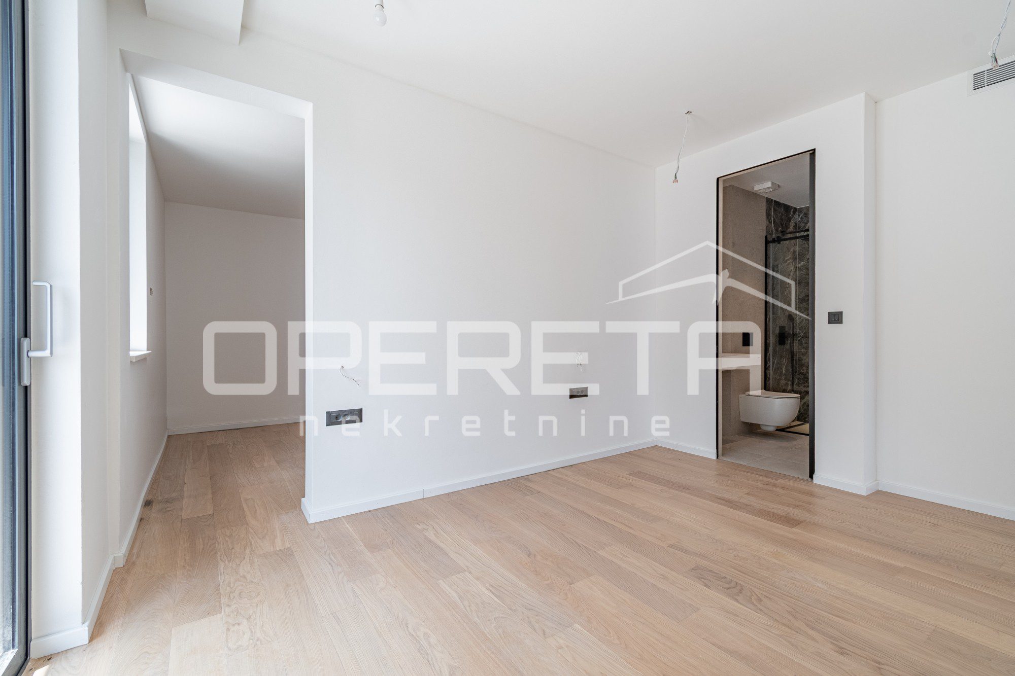 Stan je opremljen najmodernijim tehničkim rješenjima i najkvalitetnijim materijalima: troslojni hrastov parket, Schüco aluminijska stolarija s troslojnim staklom i električnim roletama, velike klizne stijene, podno grijanje putem dizalice topline, kao i ventilirana fasada koja osigurava energetsku učinkovitost i estetsku vrijednost.