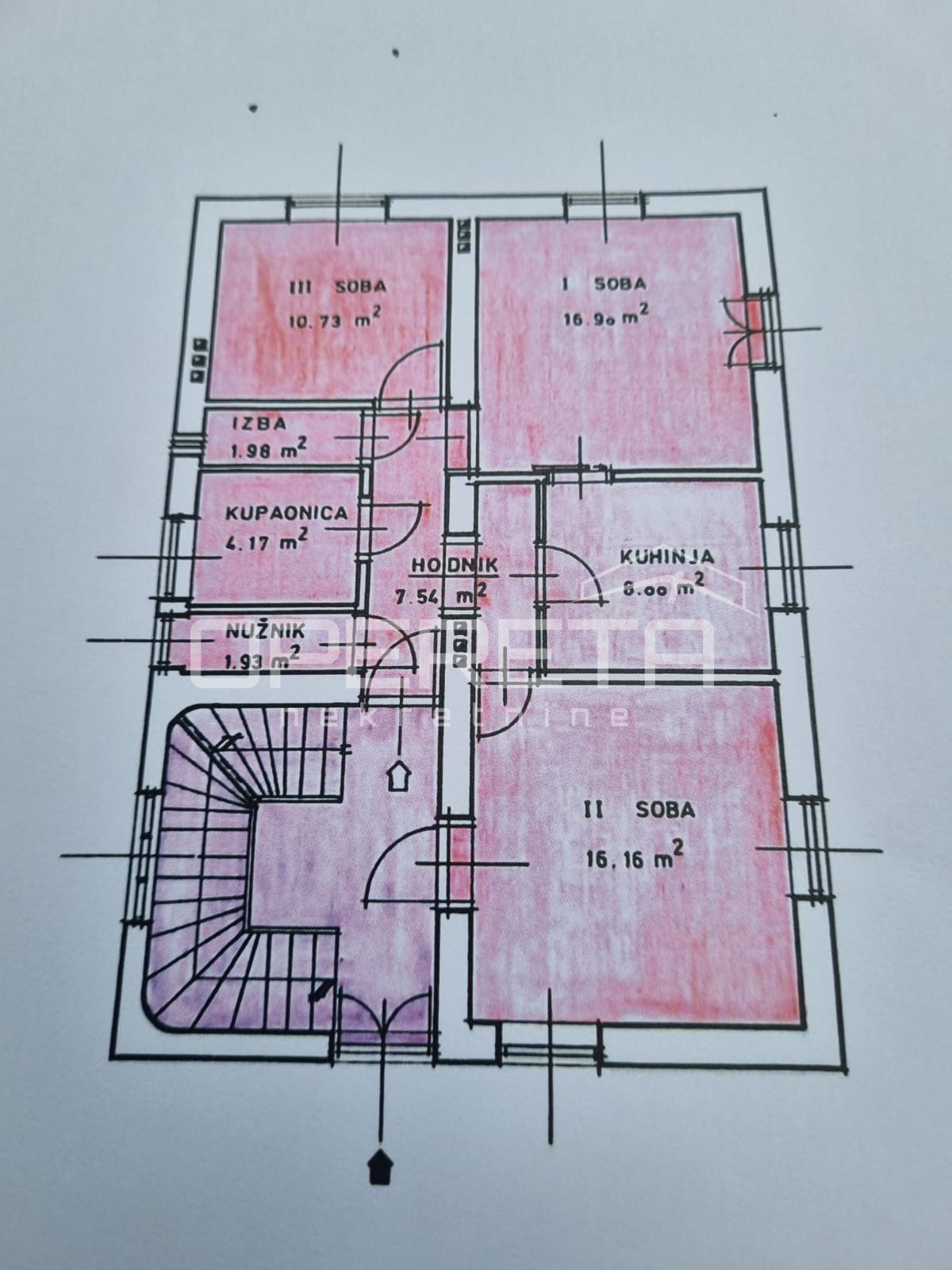 Stan se sastoji od dvije spavaće sobe, dnevnog boravka, kuhinje s blagovaonicom, jedne kupaonice, dodatnog WC-a, ostave i ulaznog hodnika. Također, uz stan dolaze i dvije konobe u vlasništvu – jedna površine 10 m², druga 6 m². Grijanje je izvedeno putem peći na pelete, a s terase se pruža djelomičan pogled na more.