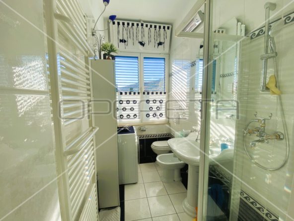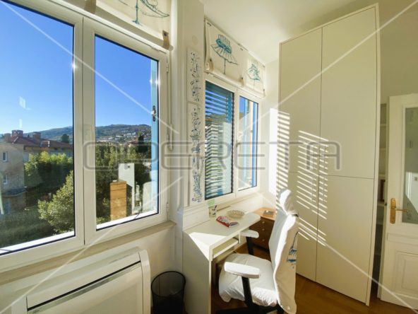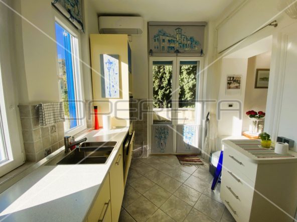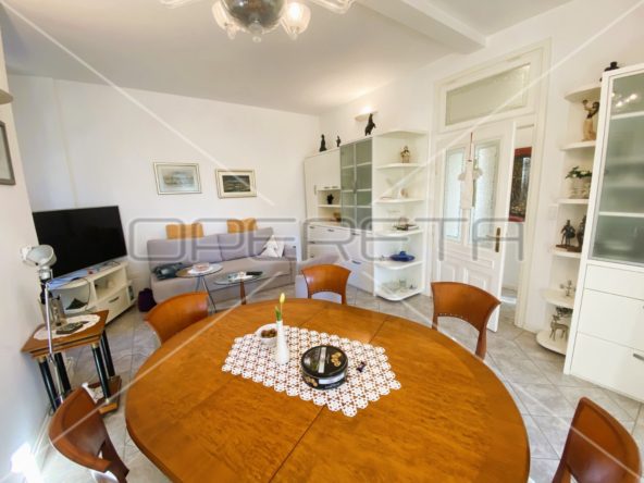 Stan se nalazi u šarmantnoj tradicionalnoj vili, okruženoj zelenilom, a prostire se na 90 m² stambenog prostora s neponovljivim pogledom na more. Prostrana terasa, zahvaljujući svojoj idealnoj orijentaciji, obasjana je sunčevim zrakama tijekom cijelog dana, što je čini savršenim mjestom za opuštanje uz jutarnju kavu ili večernje druženje.