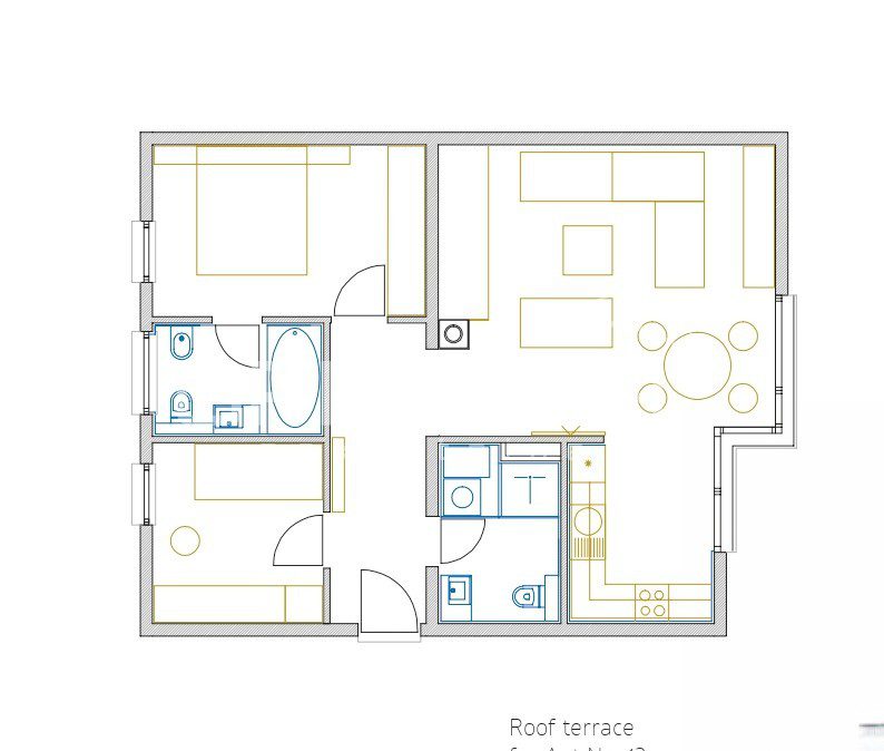 Stan ima 92 m² obračunske površine, a sastoji se od hodnika, open-space dnevnog boravka s kuhinjom, dvije spavaće sobe, dvije kupaonice i natkrivene terase. Dodatno, stanu pripada 26 m² ograđenog dvorišta, spremište u suterenu te dva garažna parkirna mjesta.