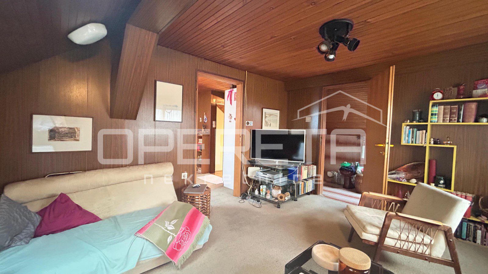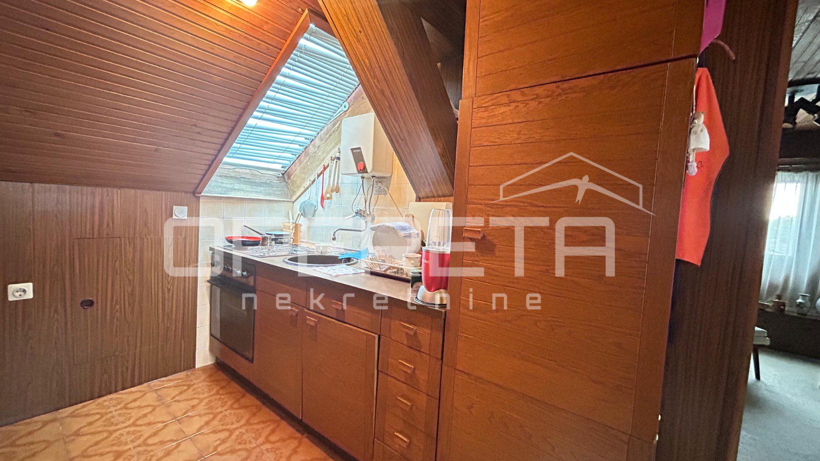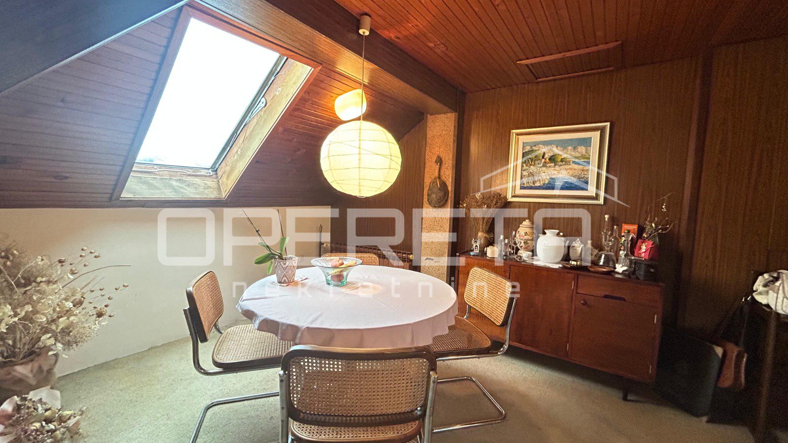 U prodaji se nalazi prostrani višeetažni stan koncipiran kao obiteljska kuća. Prostire se na 4 etaže. U prizemlju je smještena garaža, vešeraj i 3 spremišta. Na 1. katu je smještena kuhinja, dnevni boravak s blagovaonicom, ostava te WC. Na 2. katu su 2 spavaće sobe, radna soba te kupaonica s WC-om. U potkrovlju je mala garsonijera koja se sastoji od dnevnog boravka s kuhinjom i blagovaonicom te kupaonice s WC-om.
