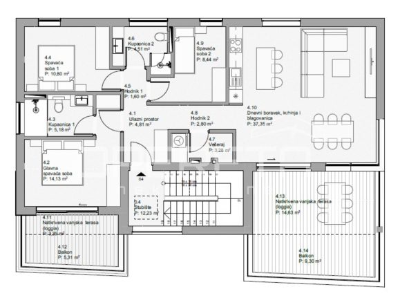 Na izvrsnoj lokaciji otoka Paga u Povljani, prodaje se penthouse u novogradnji. Roh bau faza je završena te se očekuje izolacija krova i postavljanje stolarije. Stan se nalazi na drugome katu. Sastoji se od 3 spavaće sobe, 2 kupaonice, ulaznog prostora, hodnika, vešeraja, dnevnog boravka sa kuhinjom i blagovaonicom te 2 natkrivene terase i blakona Ukupna površina stana s obračunatim koeficijentima iznosi 118,77 m2. Stanu pripadaju 2 vanjska parkirna mjesta. Urbana vila je udaljena 650 m od mora te svaki stan ima pogled na more s jedne strane i prekrasan pogled na Velebit s druge strane. Za stanove je predviđena bogata i moderna oprema. Za penthouse dostupno je i dodatno spremište. Više informacija na upit.