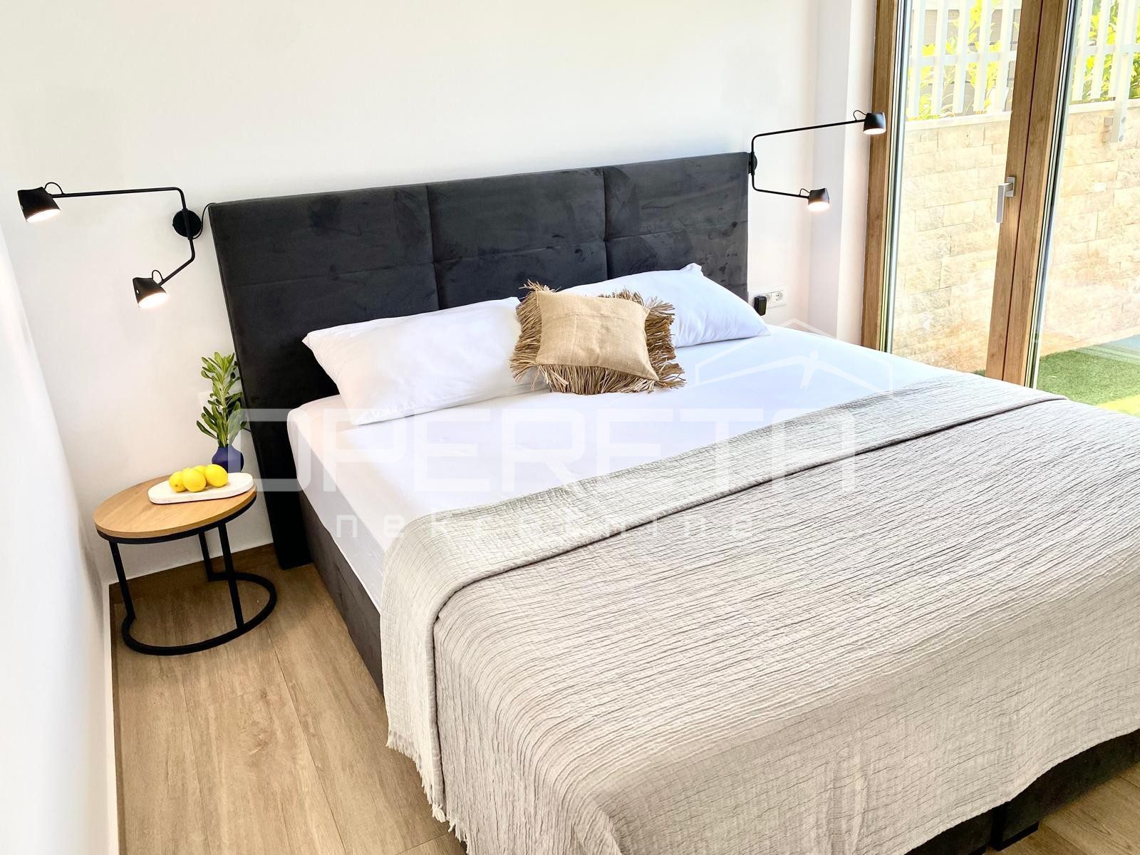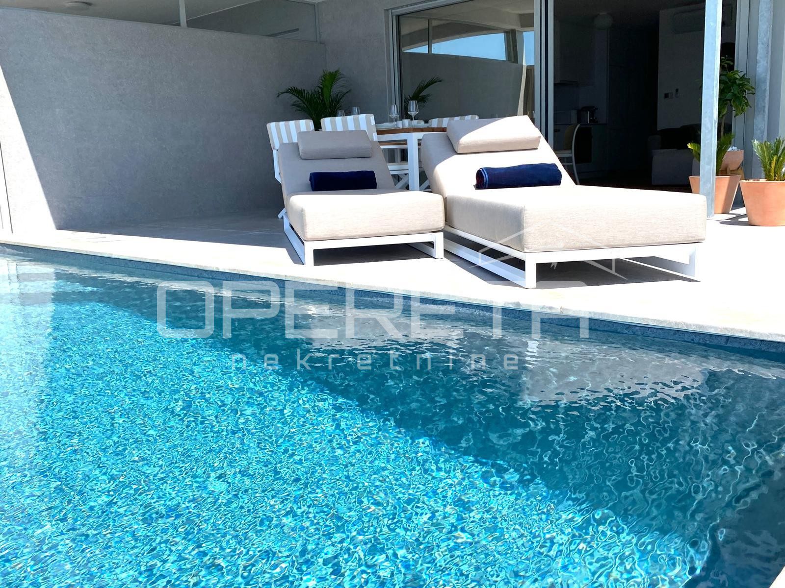 Stanu pripada i uređeni vrt površine 69 m², grijani infinity bazen od 19 m² te natkriveno parkirno mjesto s mogućnošću postavljanja punjača za električna vozila.