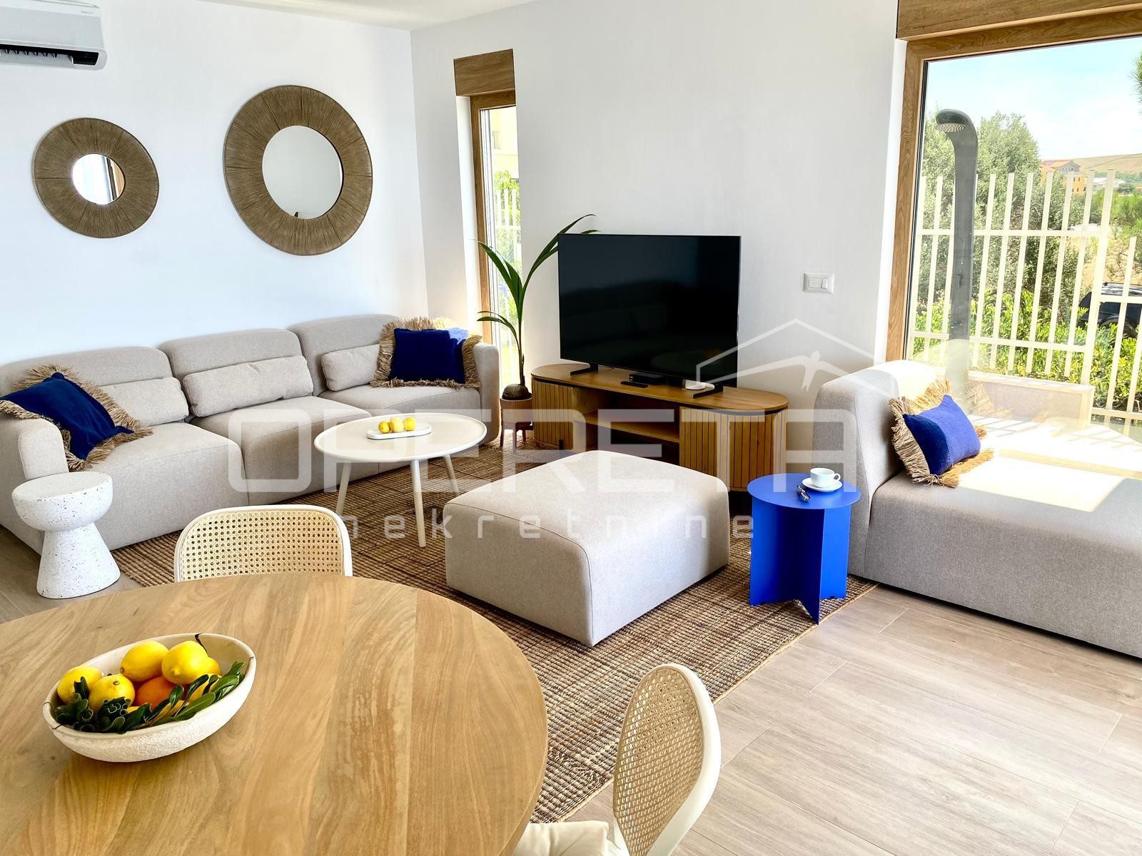 Iz Operetine ponude luksuznih nekretnina izdvajamo dvoetažan stan smješten u prizemlju nove stambene zgrade, na ekskluzivnoj lokaciji u prvom redu do mora, u mirnom dijelu Povljane na otoku Pagu.