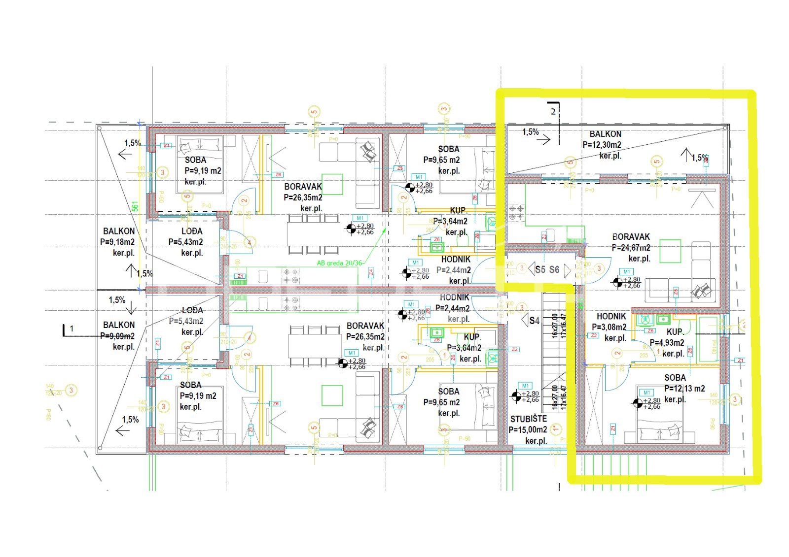 Apartmanu pripada i parking mjesto površine 2,5m2 koje je uračunato u površinu stana.
