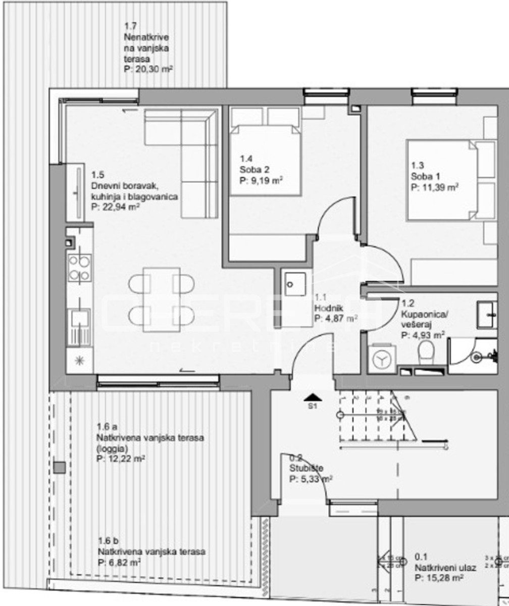 Na izvrsnoj lokaciji otoka Paga u Povljani, prodaje se stan u novogradnji. Roh bau faza je završena te se očekuje izolacija krova i postavljanje stolarije. Stan se sastoji od dvije spavaće sobe, dnevnog boravka sa kuhinjom i blagovanicom, kupaonice sa vešerajom i hodnika. Stan ima 53,32 m2 zatvorenog prostora i 42,68 m2 terase (natkrivene i nenatkrivene) kao i izlaz na vrt. Ukupna površina stana s obračunatim koeficijentima iznosi 82,90 m2. Stanu pripada i 1 vanjsko parkirno mjesto. Urbana vila je udaljena 650 m od mora te svaki stan ima pogled na more s jedne strane i prekrasan pogled na Velebit s druge strane. Za stanove je predviđena bogata i moderna oprema. Za ovaj stan postoji mogućnost izgradnje dodatnog spremišta. Više informacija dostupno je na upit.