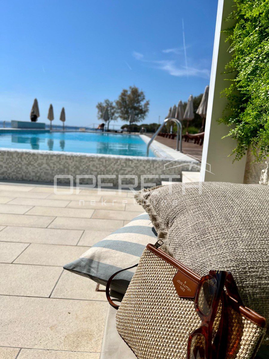 PRODAJA, Zadar, Petrčane, prvi red do mora, 69m2, novouređeno, parking mjesto, bazen, 2 spavaće sobe, netto korisne površine stana 45m2, terasa 12m2 i parkirno mjesto 13m2.