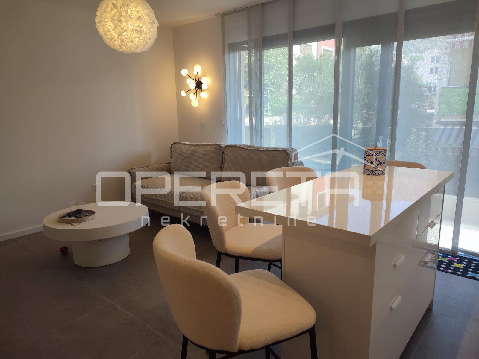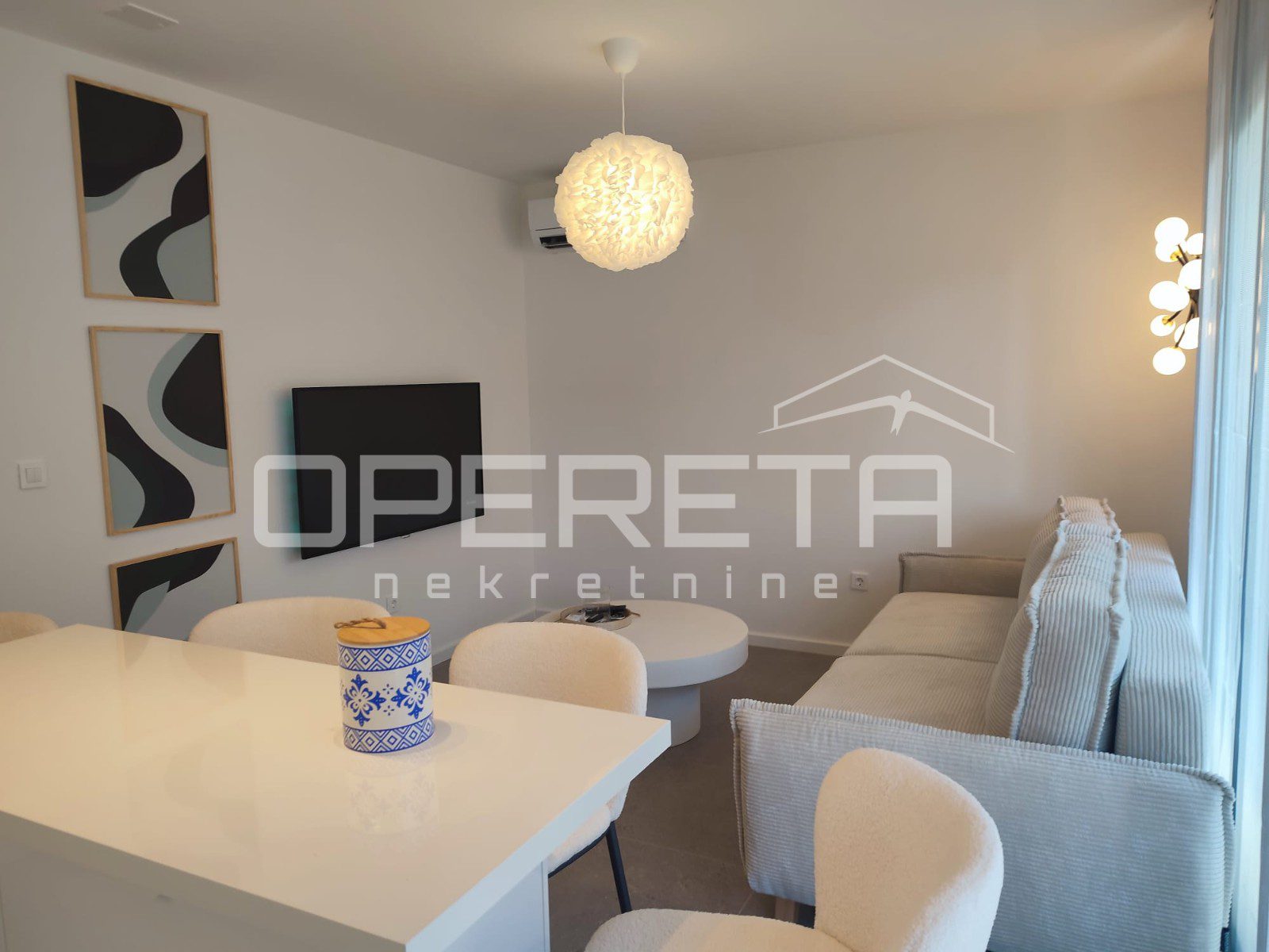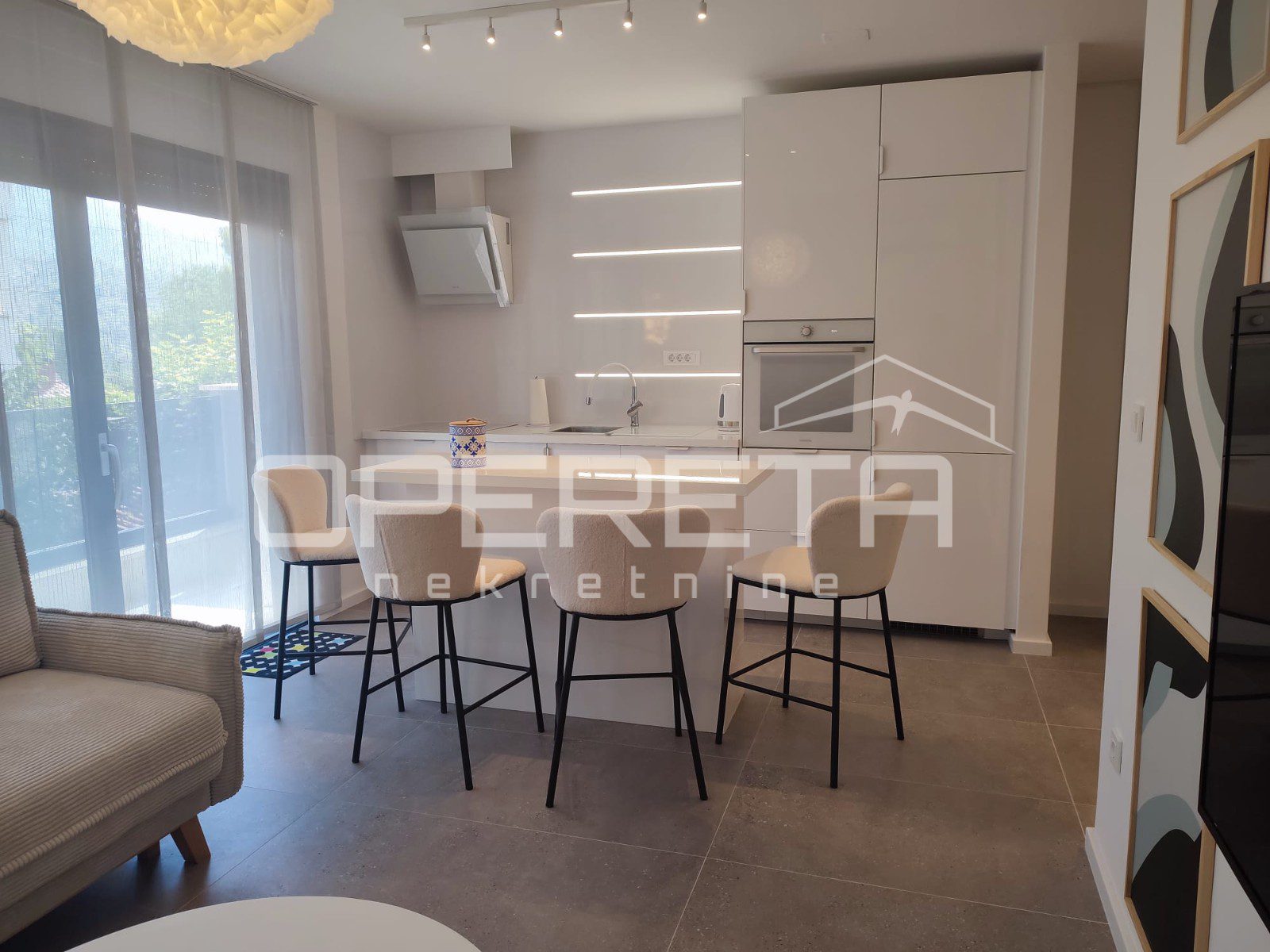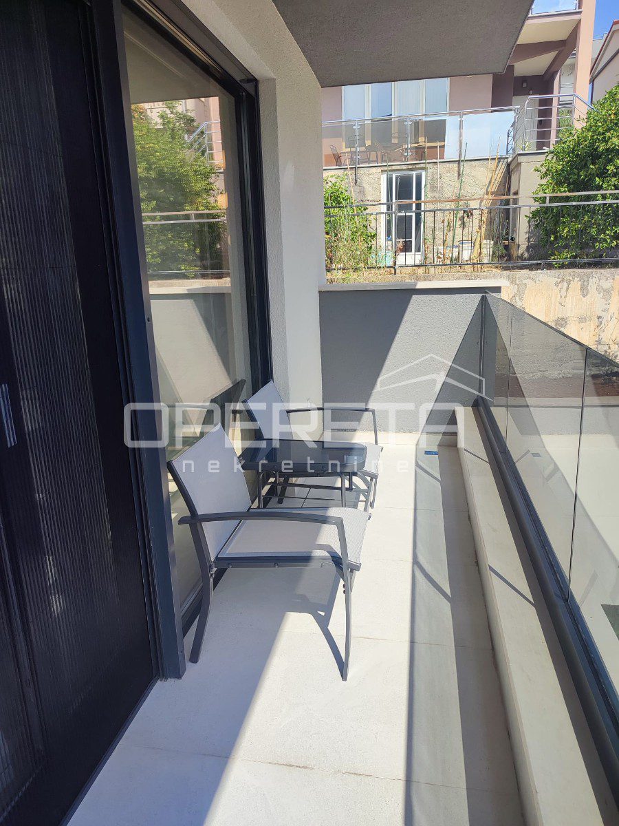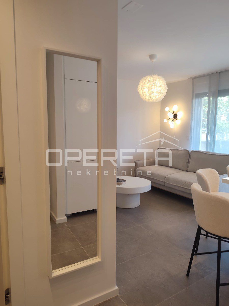 Prodaje se kompletno uređen luksuznim namještajem vrhunske kvalitete te sa podnim grijanjem u cijelom stanu (osim spavaće sobe), aluminijskim otvorima s komarnicima. Svaka prostorija je klimatizirana.