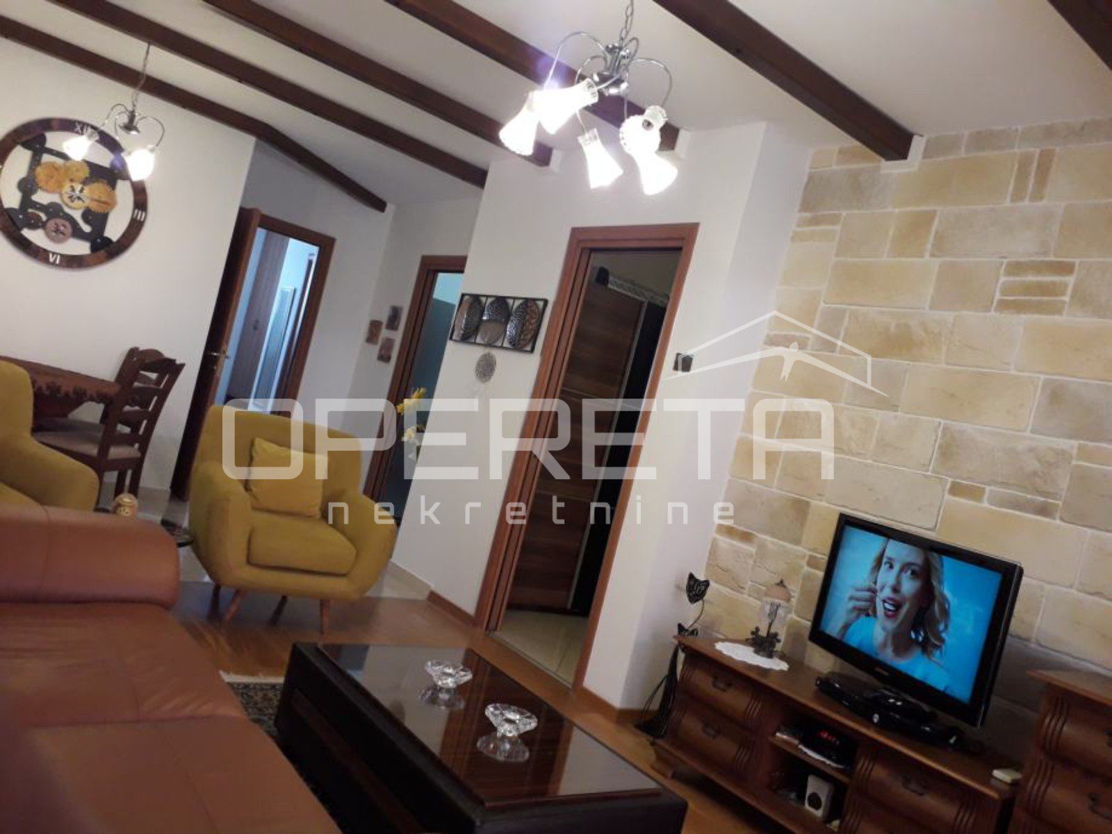 Zgrada je iz 2010., a stan je potpuno namješten i odmah useljiv. Oprema je promišljeno odabrana: podno grijanje u obje kupaonice, klimatizacija dnevnog dijela, PVC stolarija s roletama, protuprovalna vrata i videoportafon. Orijentacija istok, jug i sjever osigurava obilje prirodnog svjetla i dobar protok zraka tijekom dana.