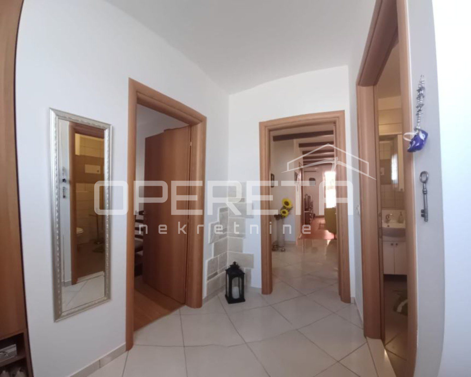 U Strožancu, na mirnoj mikrolokaciji Podstrane i na pješačkoj udaljenosti do mora i svih dnevnih sadržaja, nalazi se komforan dvosobni stan u prizemlju manje zgrade novije gradnje. Tlocrt je osmišljen za svakodnevni život: ulazni hodnik vodi u povezanu kuhinju s blagovaonicom i dnevnim boravkom iz kojeg se izlazi na južno orijentiranu lođu, dok su dvije spavaće sobe smještene mirnije, odvojene od dnevne zone. Veća, bračna soba ima predsoblje i vlastitu kupaonicu, a druga kupaonica nalazi se uz ulaznu zonu. Pristup stanu prilagođen je osobama s otežanim kretanjem.