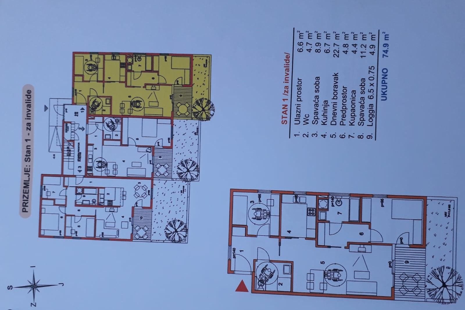 Stambena neto površina iznosi oko 70,66 m². Vanjski prostori logično nadograđuju interijer: lođa od 6,60 m² povezana je s popločanom terasom od 12 m² i kućnim vrtom od 11,79 m², što stvara ugodan privatni eksterijer za boravak na otvorenom tijekom većeg dijela godine. Stanu pripada i označeno vanjsko parkirno mjesto površine oko 11 m² unutar dvorišta zgrade okruženog zelenilom, što dodatno podiže osjećaj intime i tišine.