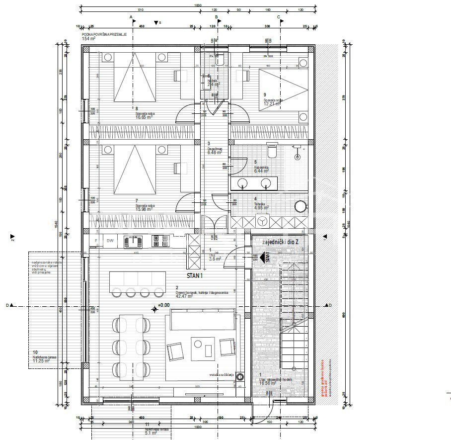 Iz naše ponude izdvajamo stan u na prvom katu manje stambene zgrade, površine 115,27 m2 udaljen svega 700 metara od mora.