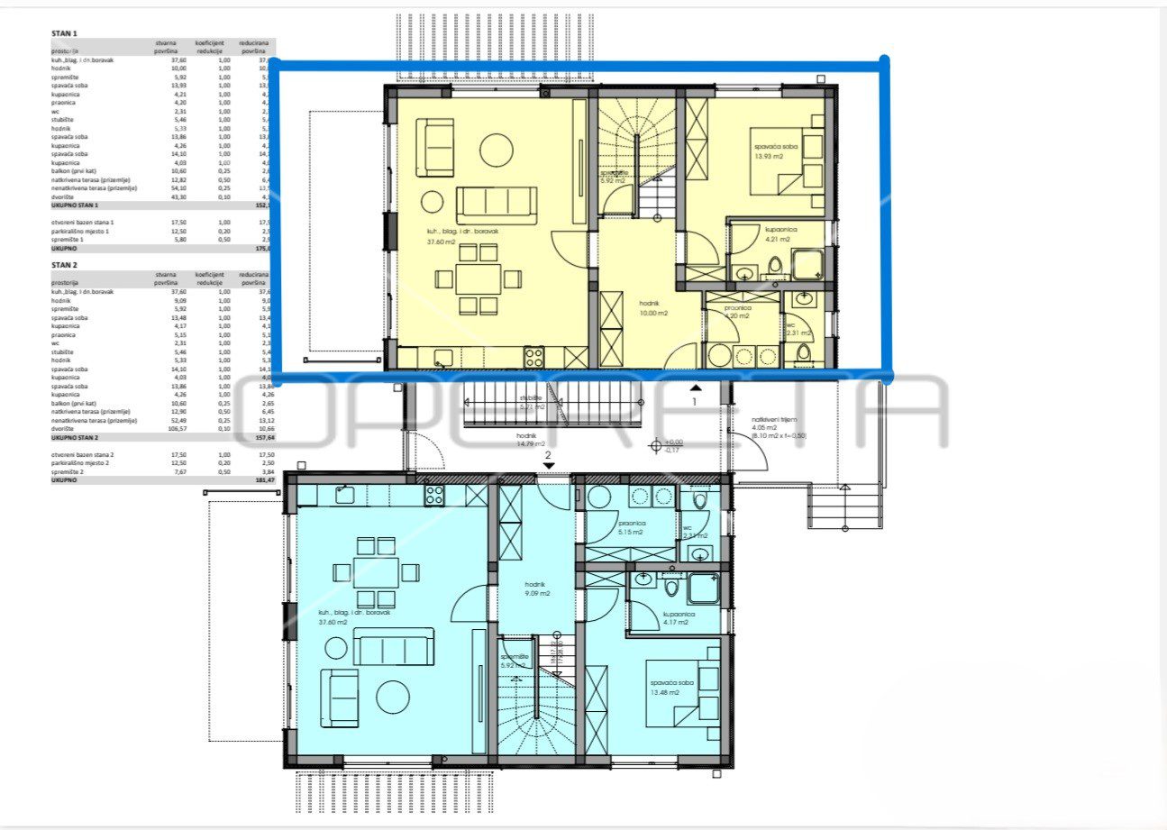 Prodaje se dvoetažan stan S1 ukupne površine 152,13m2 s bazenom i prelijepim pogledom na more