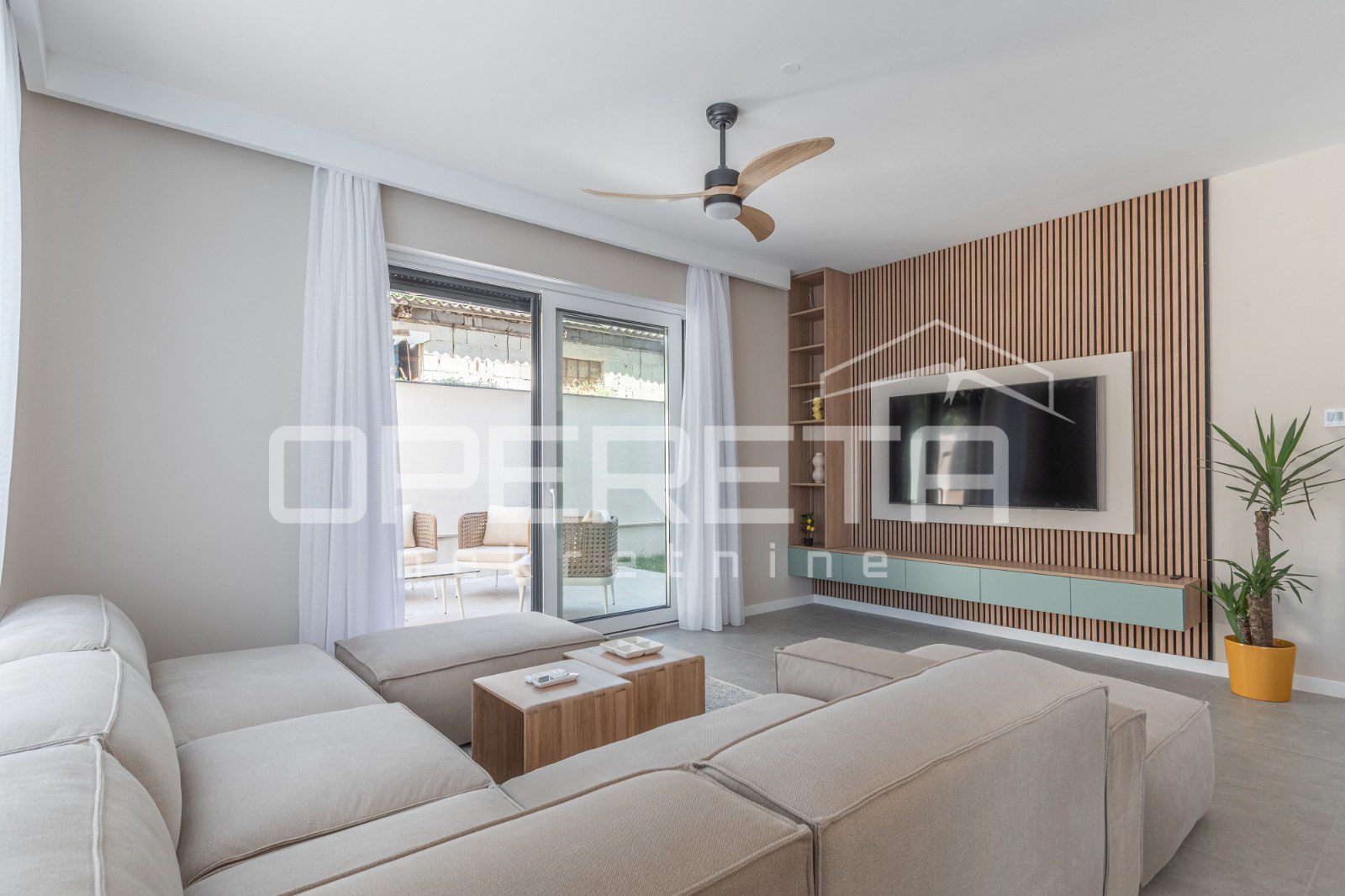U dnevnom boravku, kupaonicama i hodnicima postavljena je prvoklasna keramika dok se u sobama će se nalazi troslojni parket od hrasta.